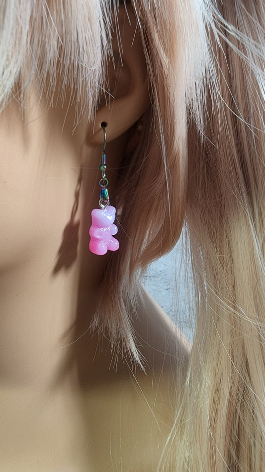 Ombre Glitter Gummy Bear Earrings | Rainbow Dangles | Pink & Clear