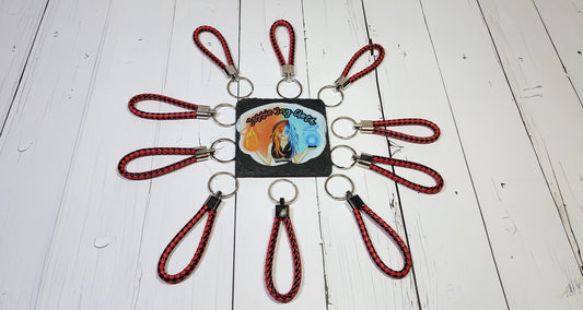 Red & Black | Leather Braided Rope Key Chain Strap | Add on