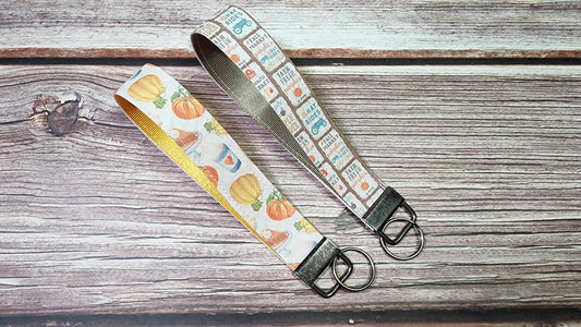 Fall Quotes, Pumpkins, Drink | Faux Leather & Nylon Fabric Keychain | Key Fob Wristlet