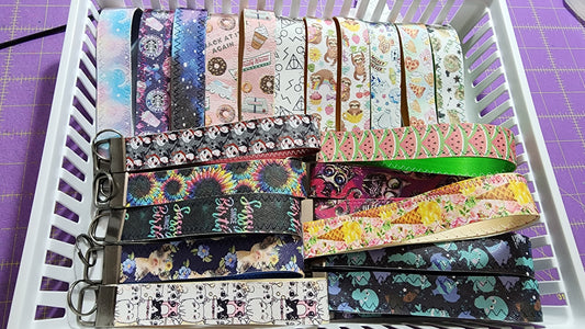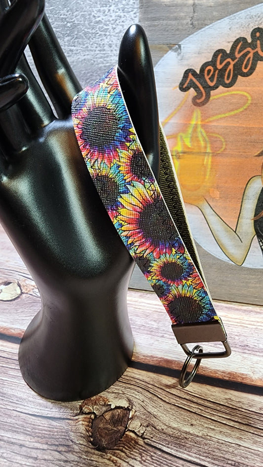 Faux Leather & Nylon Fabric Keychain | Key Fob Wristlet | Sunflower, Pig, Farm Animal