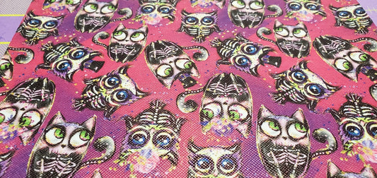 Faux Leather & Nylon Fabric Keychain | Key Fob Wristlet | Spooky Kawaii Owls and kitty cat