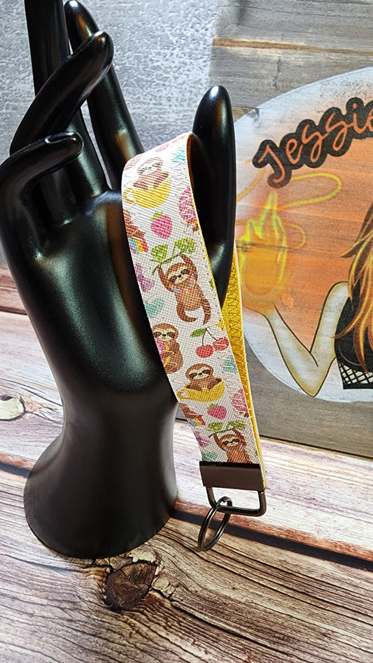 Faux Leather & Nylon Fabric Keychain | Key Fob Wristlet | Kawaii Sloth Doughnut, cupcake, rainbow