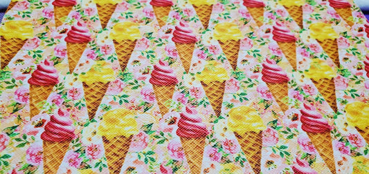 Faux Leather & Nylon Fabric Keychain | Key Fob Wristlet | Pink or Yellow Ice cream cones