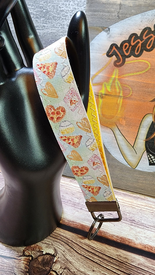 Faux Leather & Nylon Fabric Keychain | Key Fob Wristlet | Watermelon & Pizza