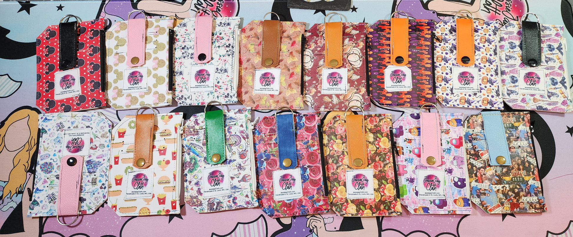 This is the Pocket Pal pattern by LindsHandmade. It offers three card slots and a small zippered pocket to hold your essentials.