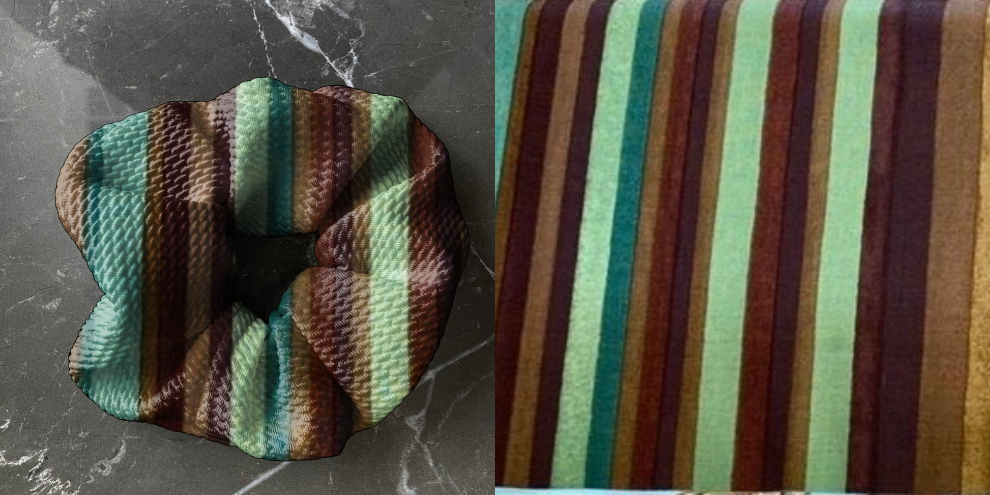 Brown, Green, Teal Lines | Custom Hair Scrunchie | Adult Size & Toddler Size | 7 Options