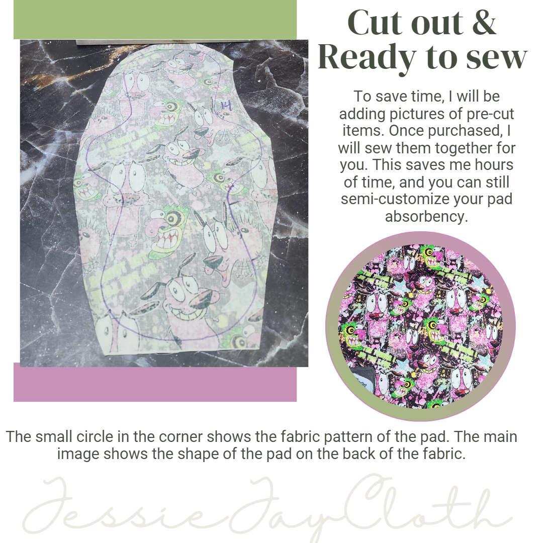 14 inch Classic Curvy | Courage Cowardly Dog | Cloth Pad or liner | Choose your absorbency