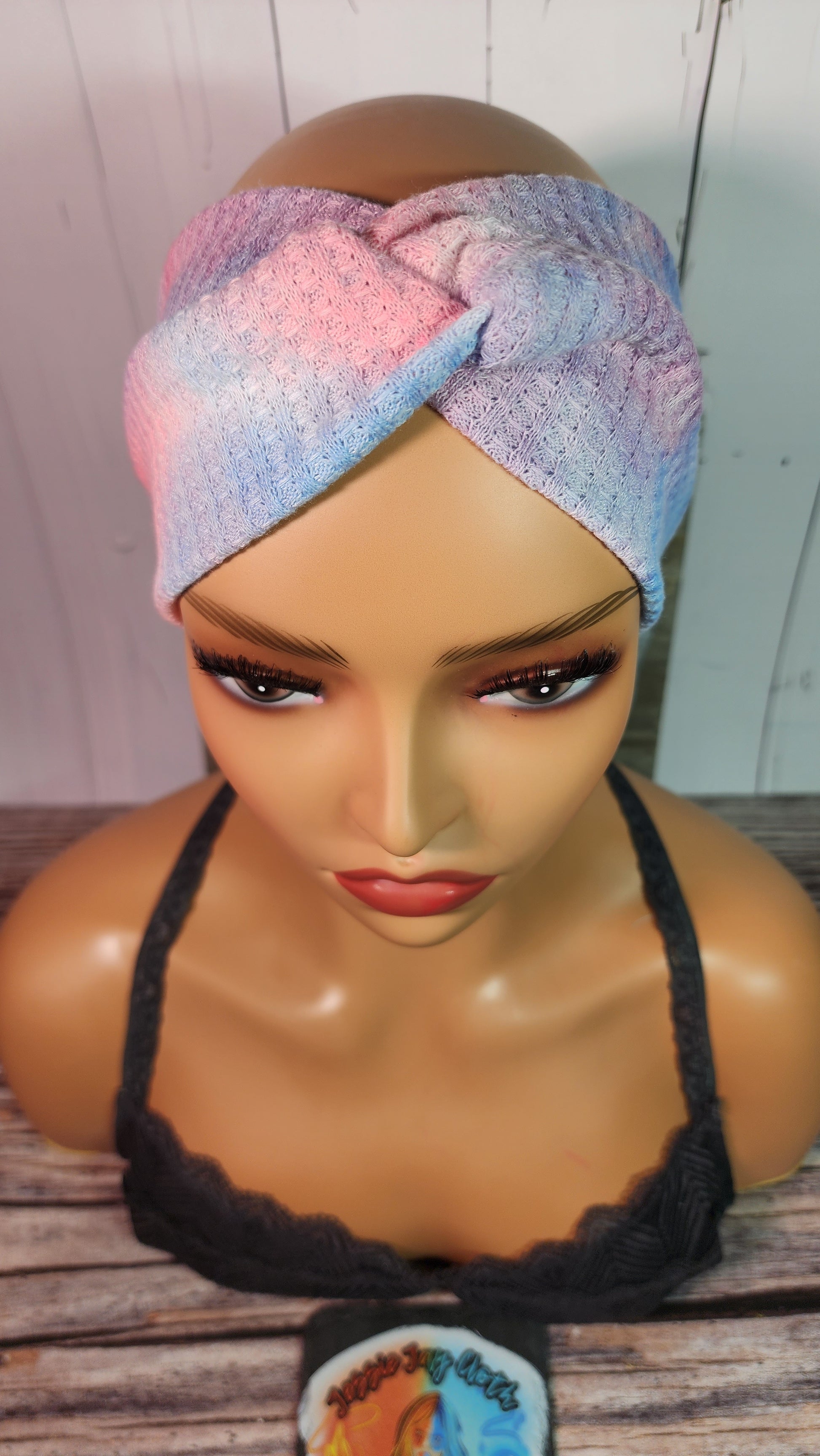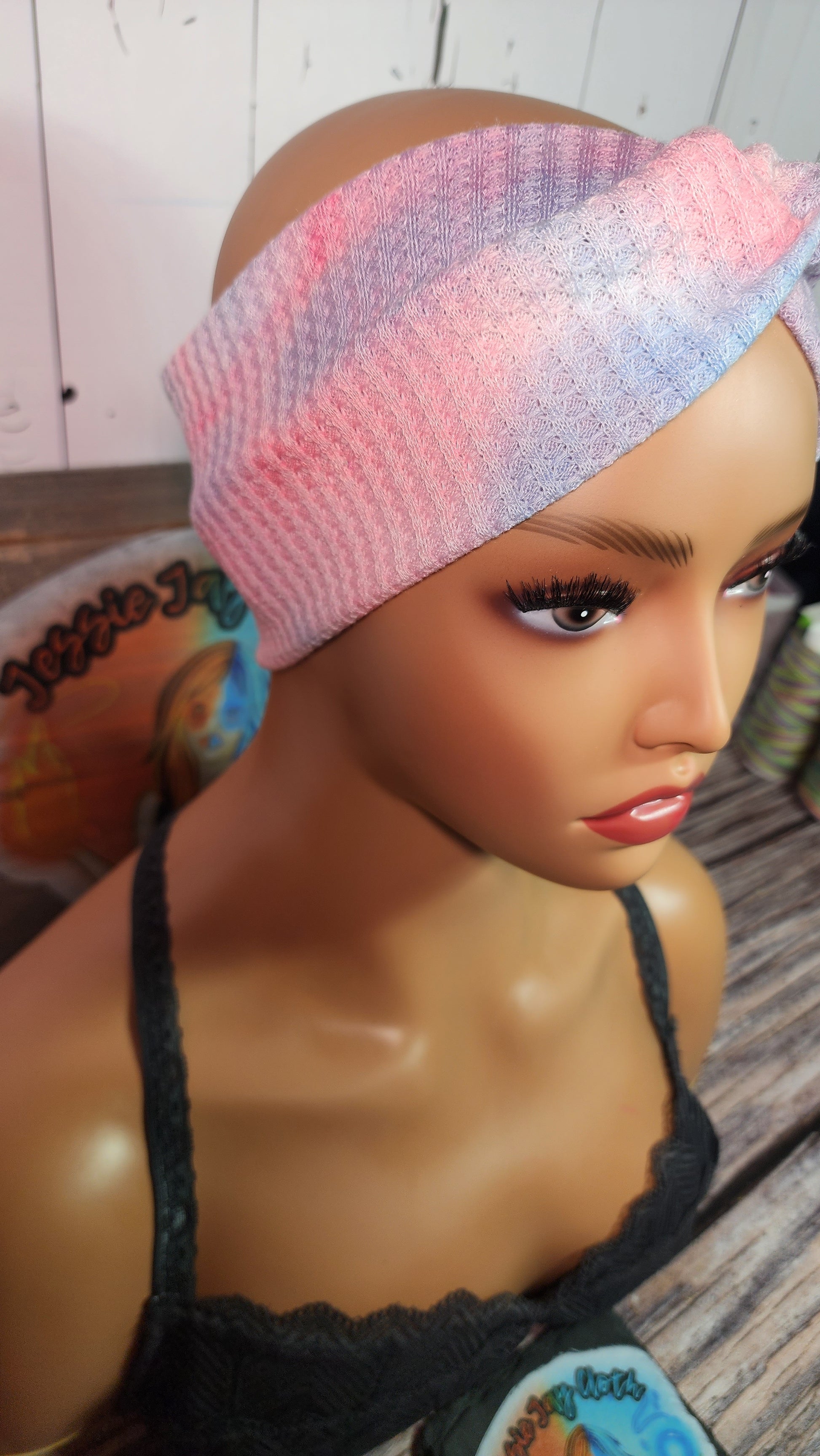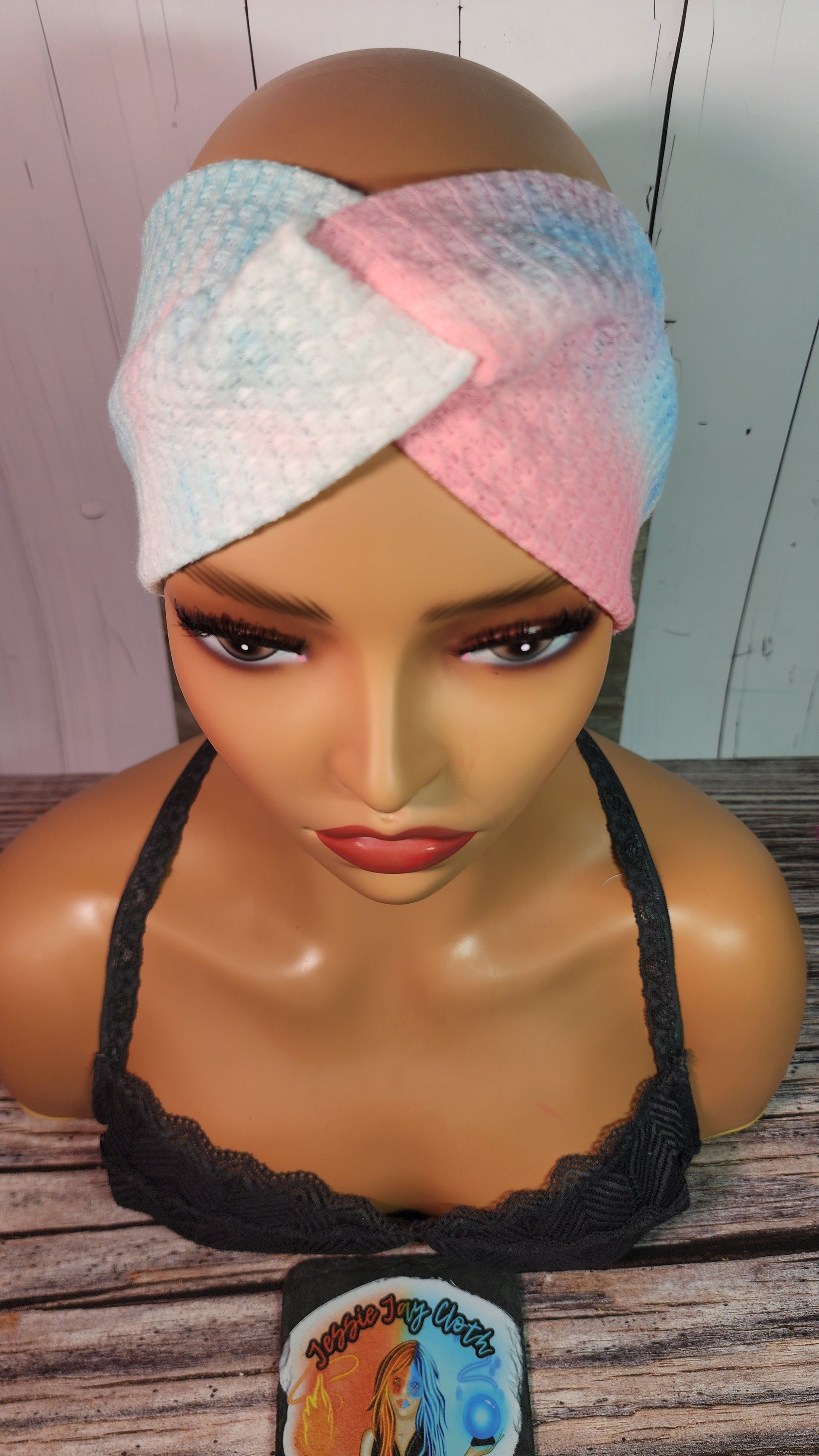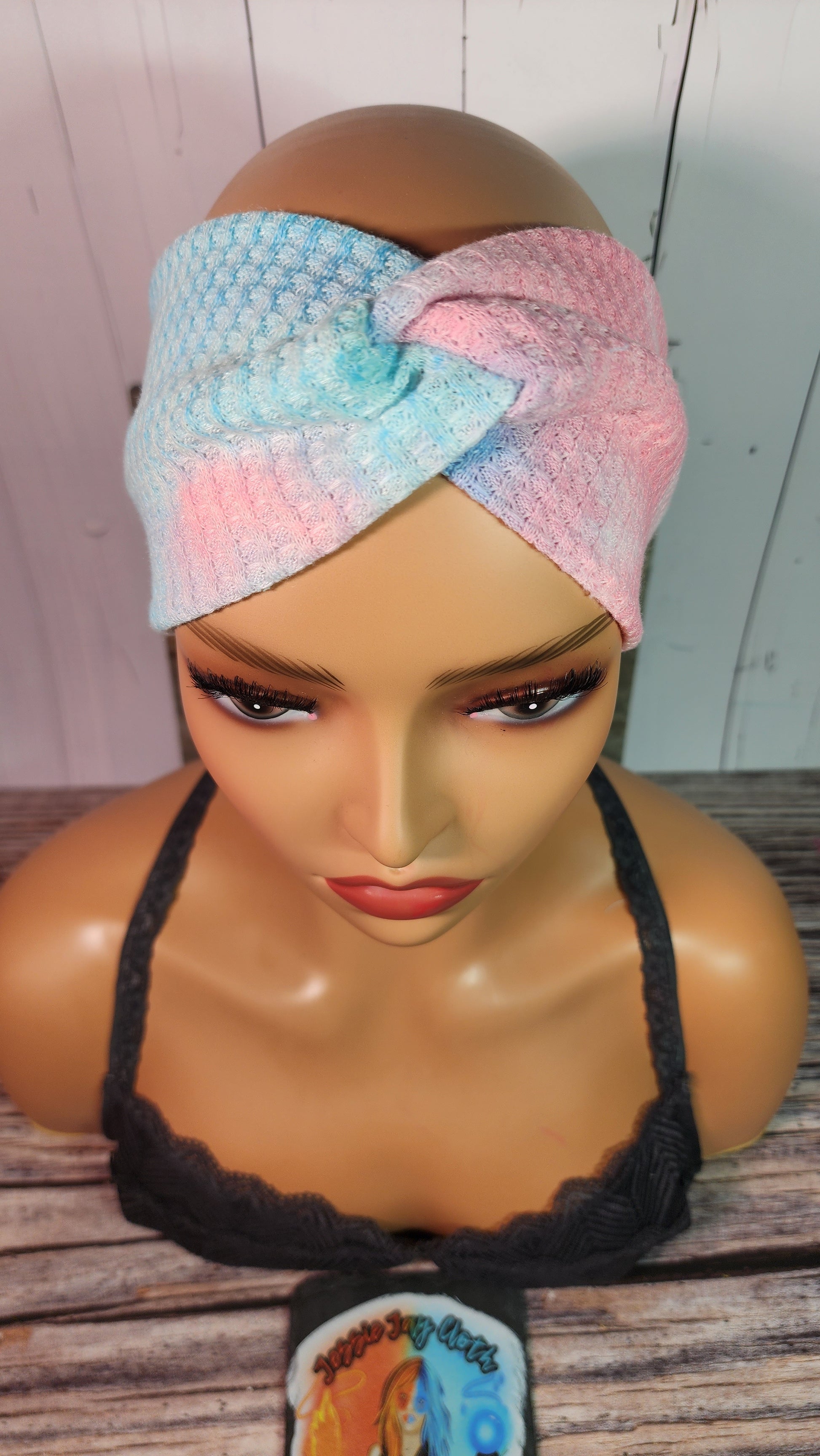 Gender Reveal Baby Tie Dye Waffle Knit | Cotton Candy | Twist Knot Head Band | Custom Turban Head Band | 4 Sizes