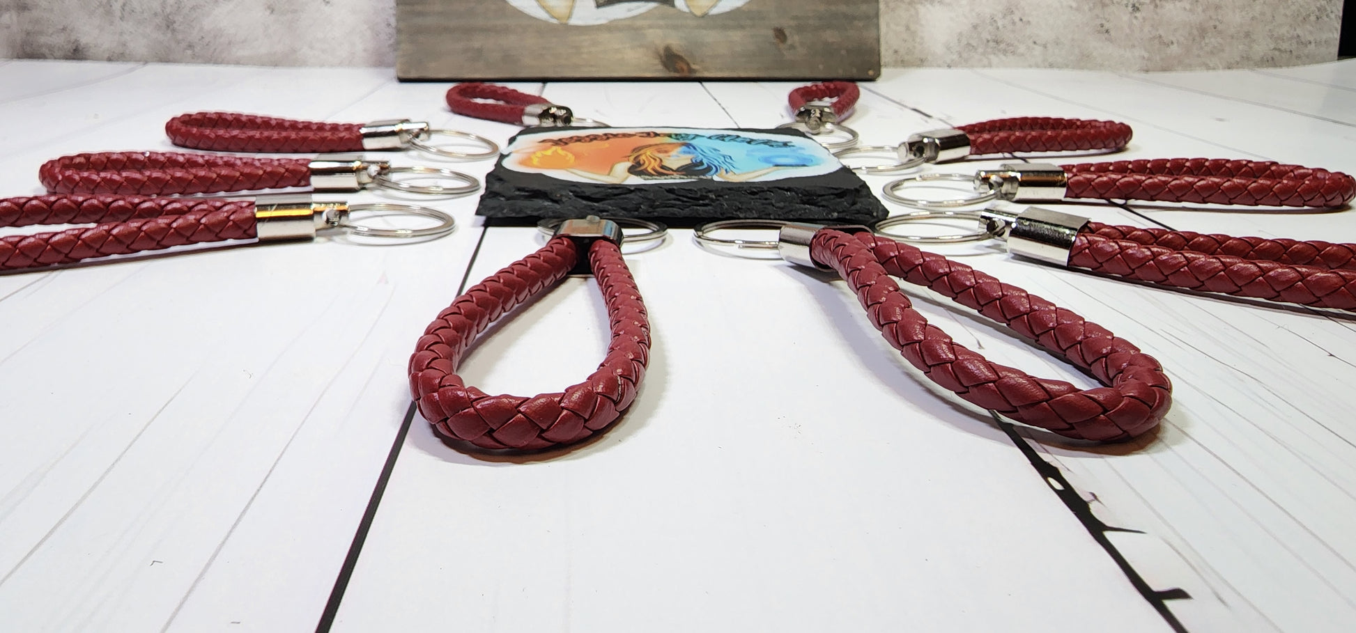 Burgundy | Leather Braided Rope Key Chain Strap | Add on