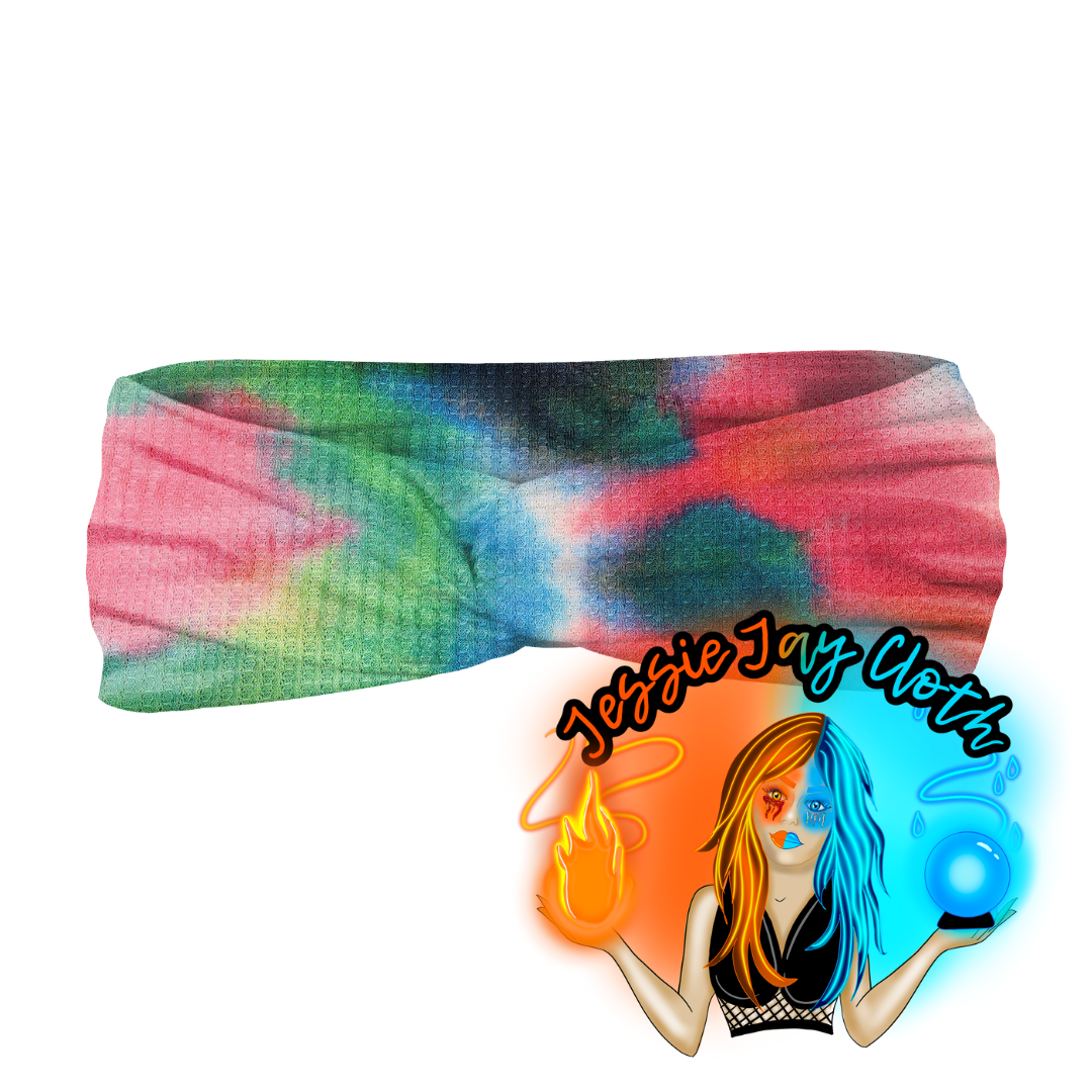 Vibrant Rainbow Tie Dye Waffle Knit | Twist Knot Head Band | Custom Turban Head Band | 4 Sizes