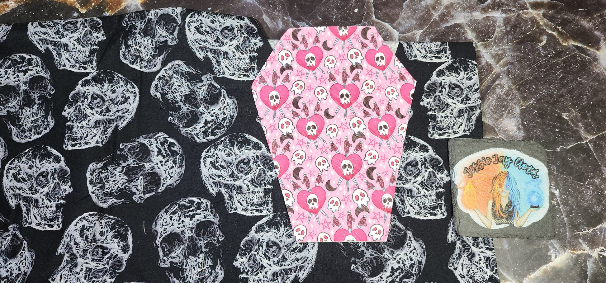 CUSTOM | Self Defense Skulls, Coffin Wristlet Clutch | Vinyl & Cotton Pouch | Optional Add on's | Bag, Wallet, Purse
