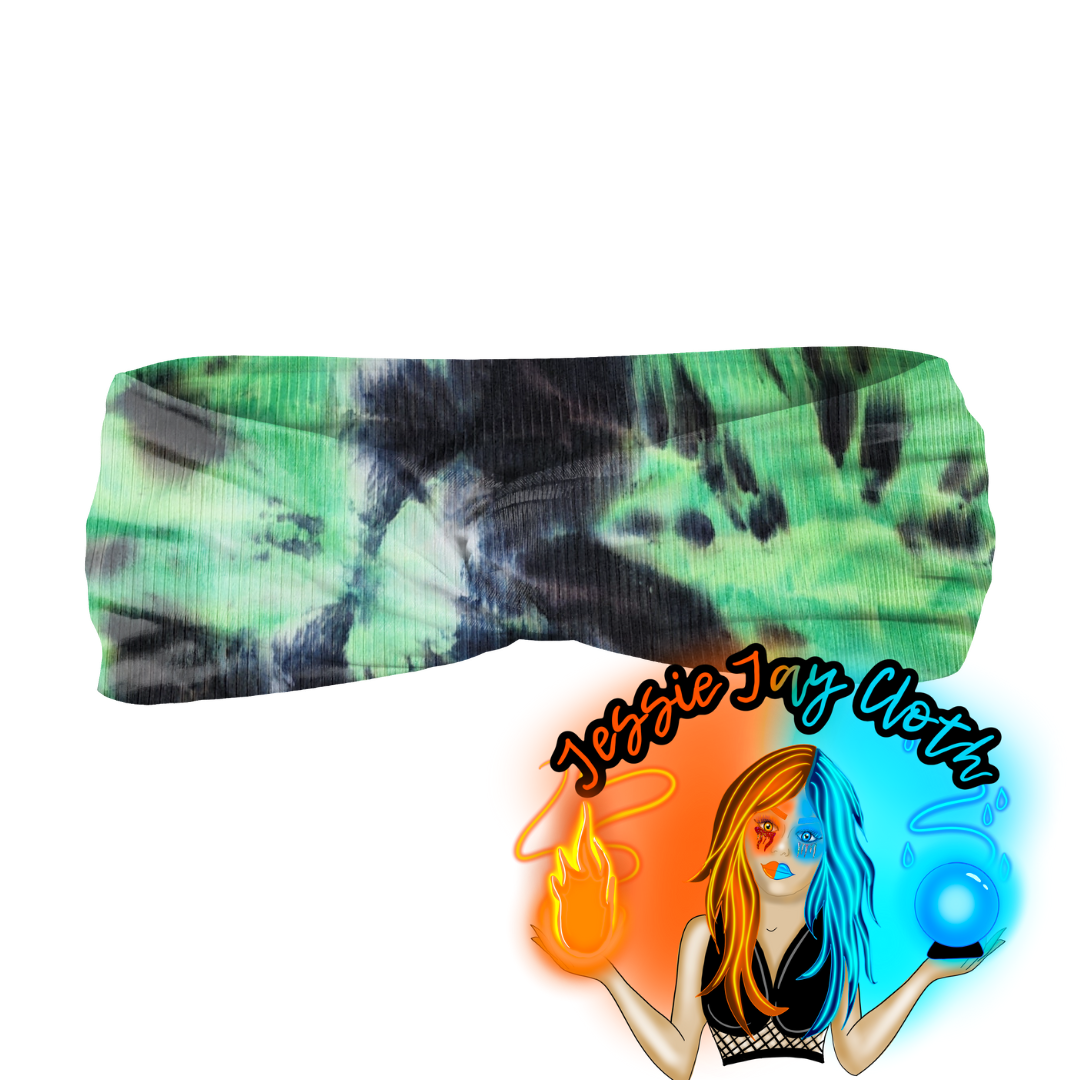 Neon Green & black Tie Dye | Ribbed Knit | Twist Knot Head Band | Custom Turban Head Band | 4 Sizes