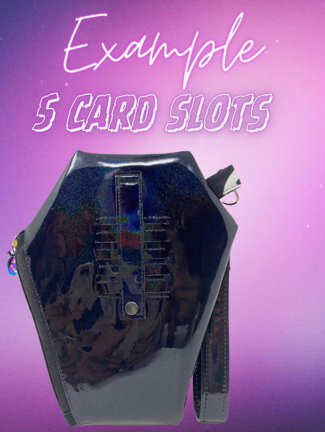 🌙 5 Credit/Debit Card Slots - This will be cut into the vinyl print selected. So there will be slits on this side of the bag.