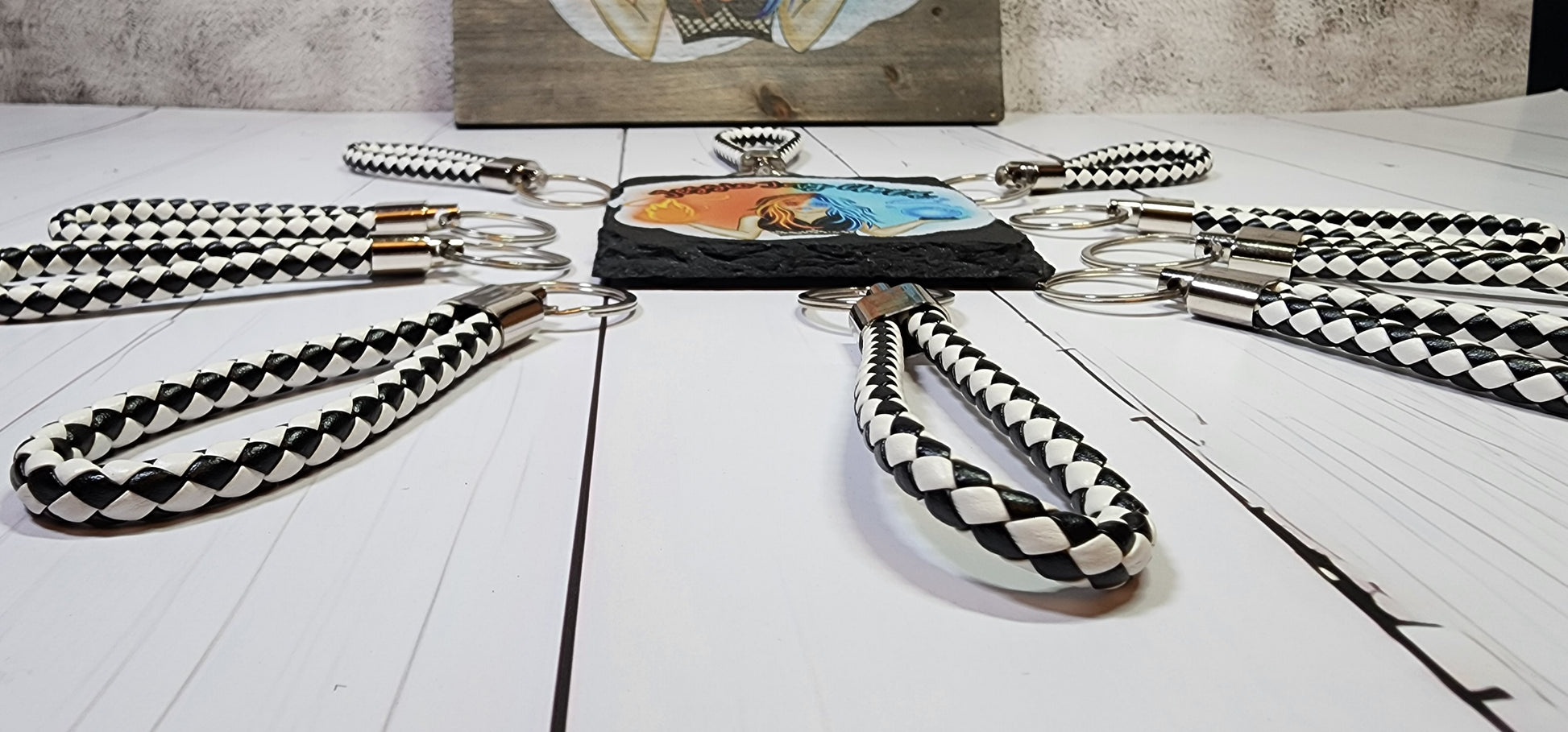 White & Black | Leather Braided Rope Key Chain Strap | Add on