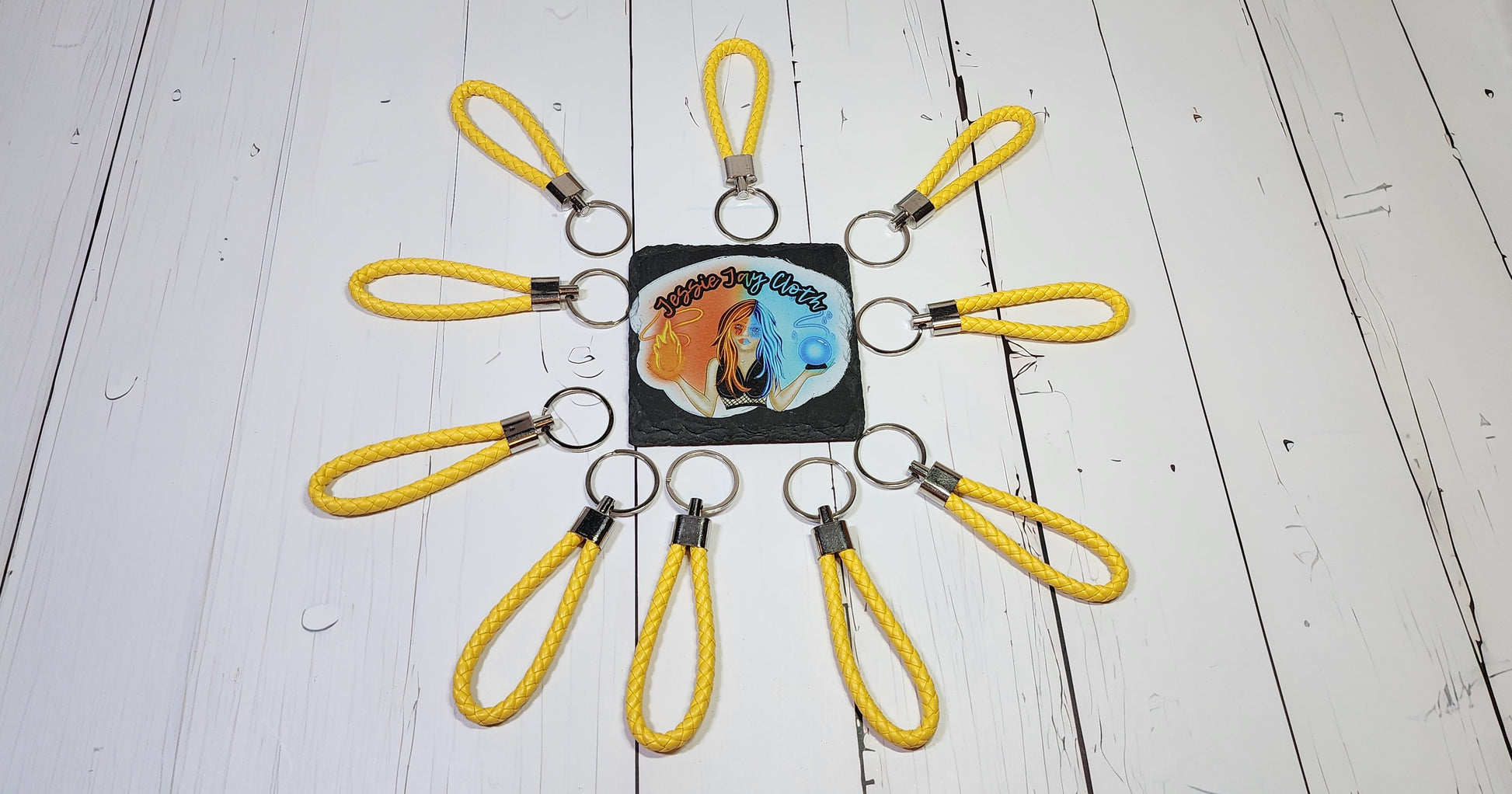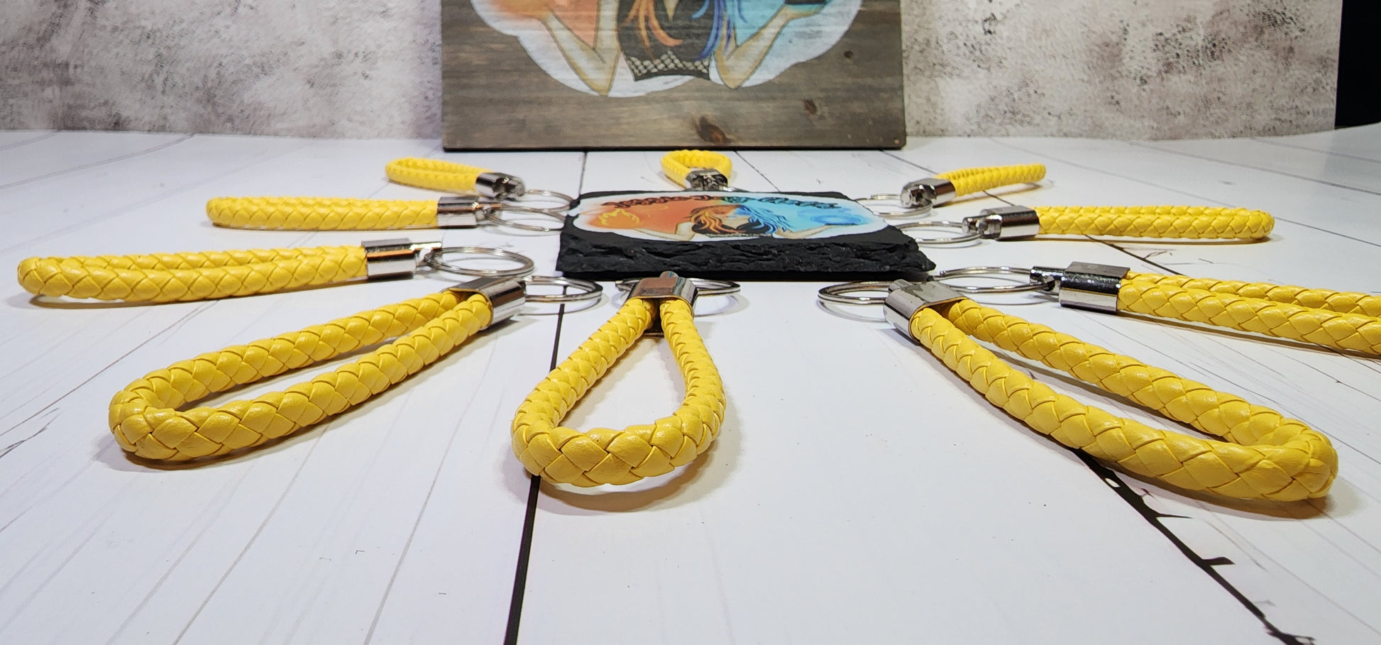 Yellow | Leather Braided Rope Key Chain Strap | Add on
