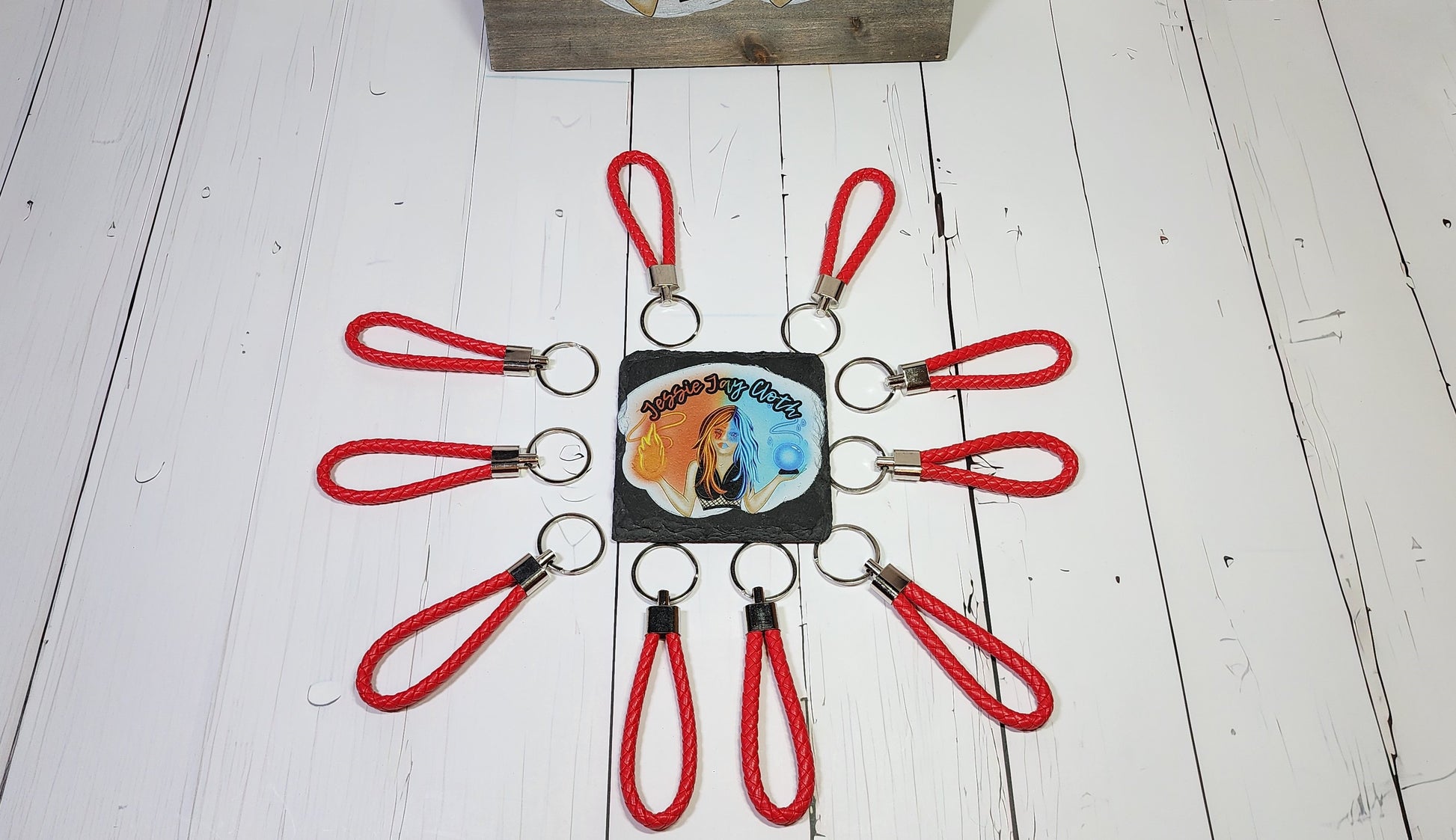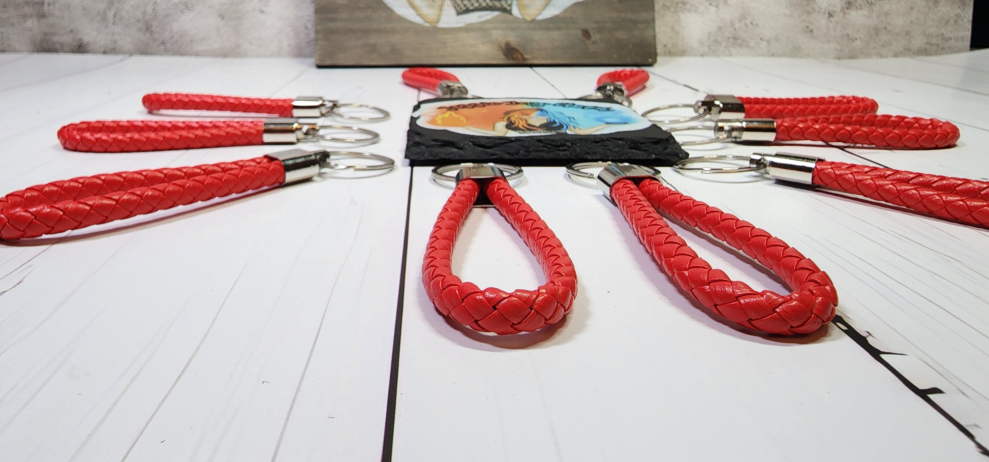 Blood Red | Leather Braided Rope Key Chain Strap | Add on
