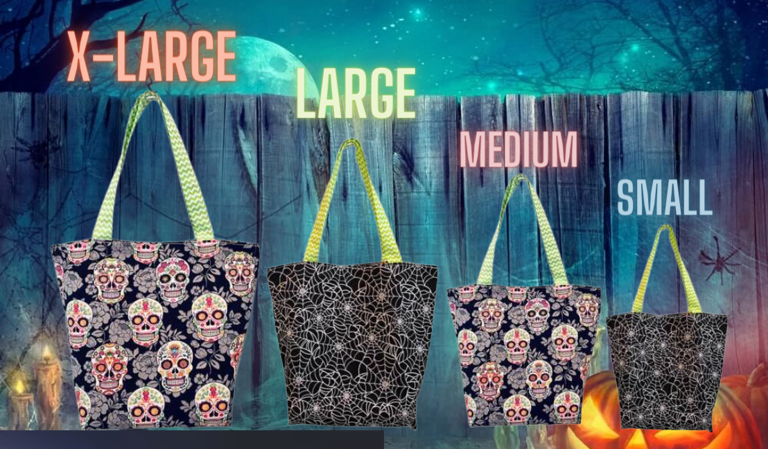 The bottom of this bag is boxy and can be used for way more than a trick or treat tote bag! We use them as shopping bags, gift bags, etc.! Just change your fabric patterns to something different!