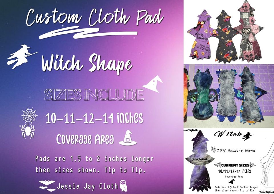 Custom Witch Shaped Cloth Pad | 10/11/12/14 | 2.75" Snapped Width