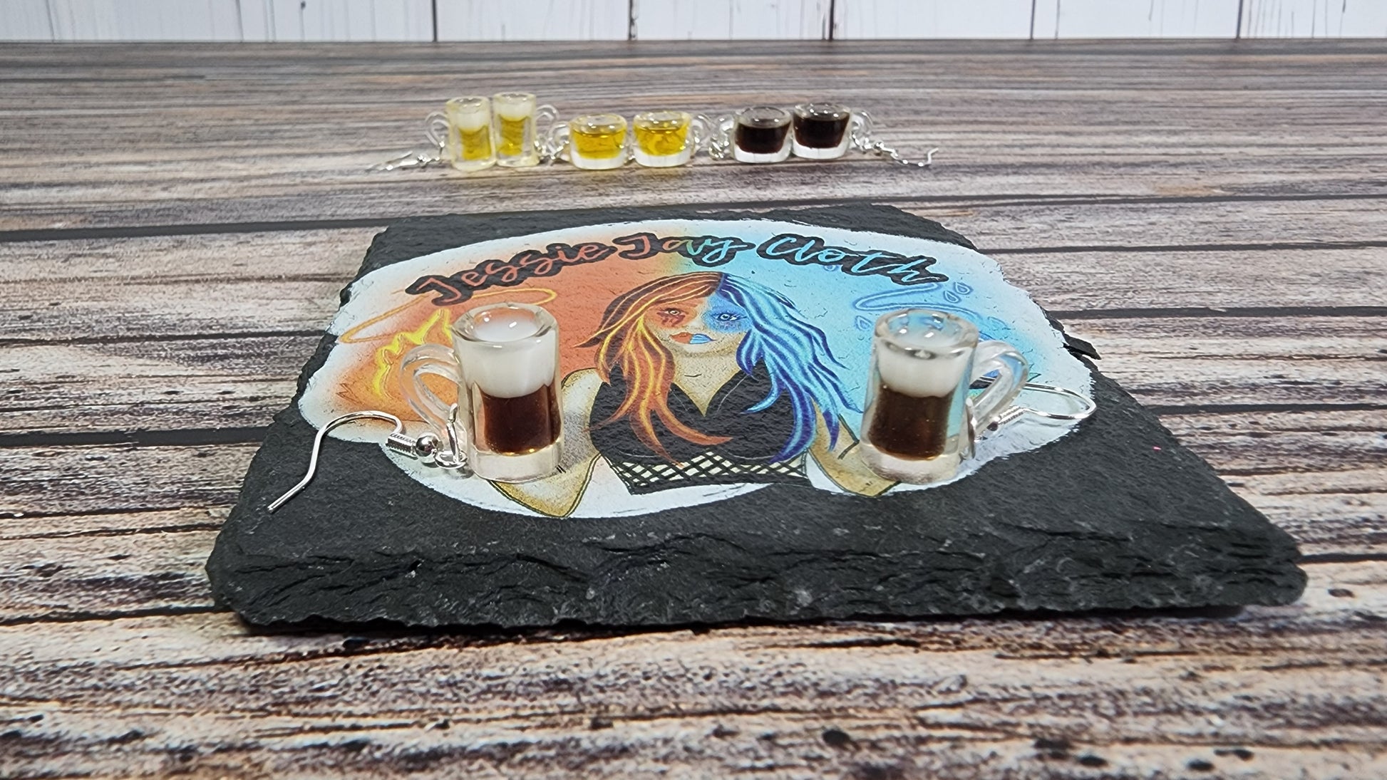 Dark Beer Earrings | Silver Dangles | Beer Glass | Party, Bar, Drinking | 3 Variations in Stock