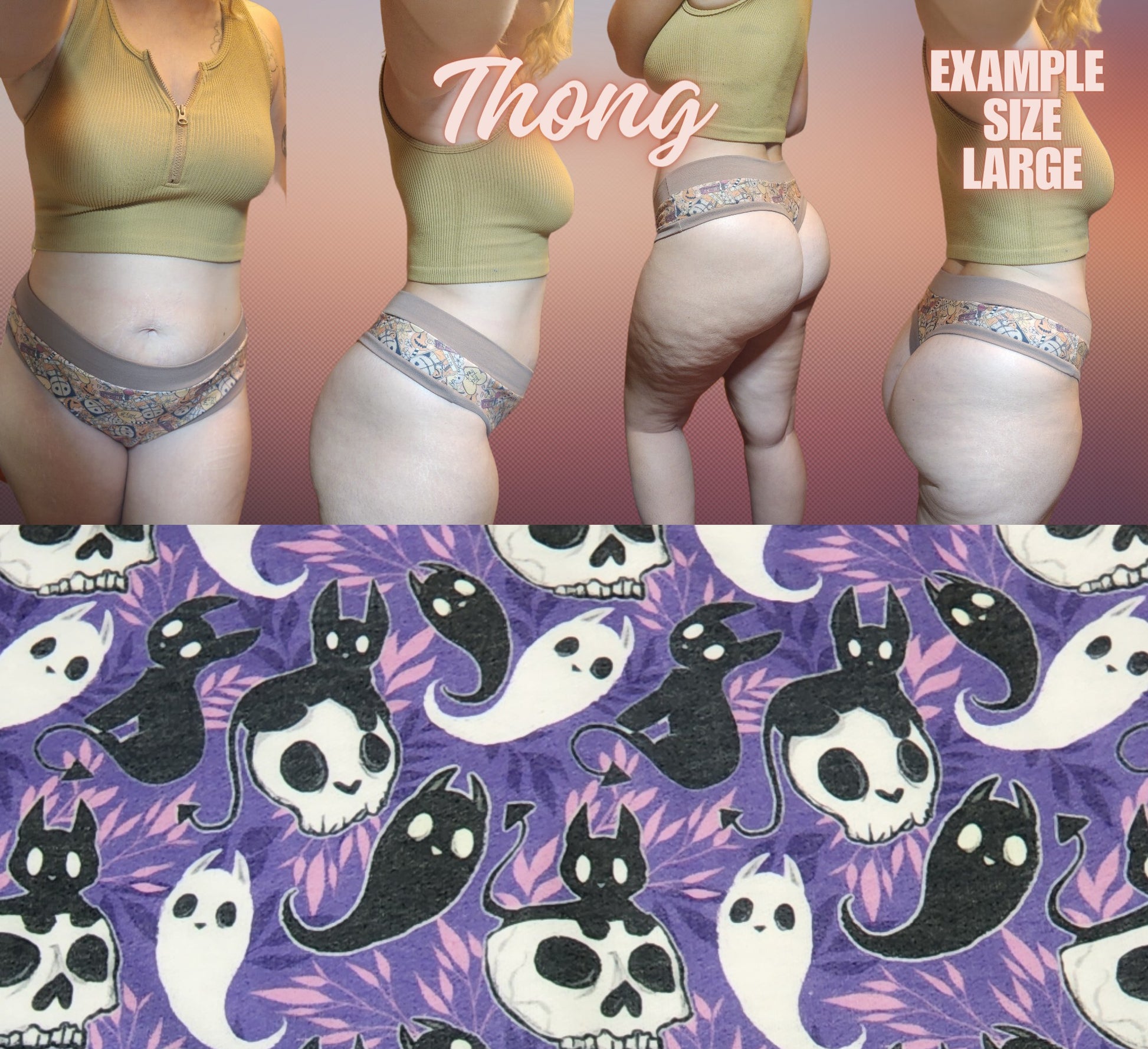 Demon Cat on Purple, Ghost | Thondlewear Thong | Elastic or Knit Bands