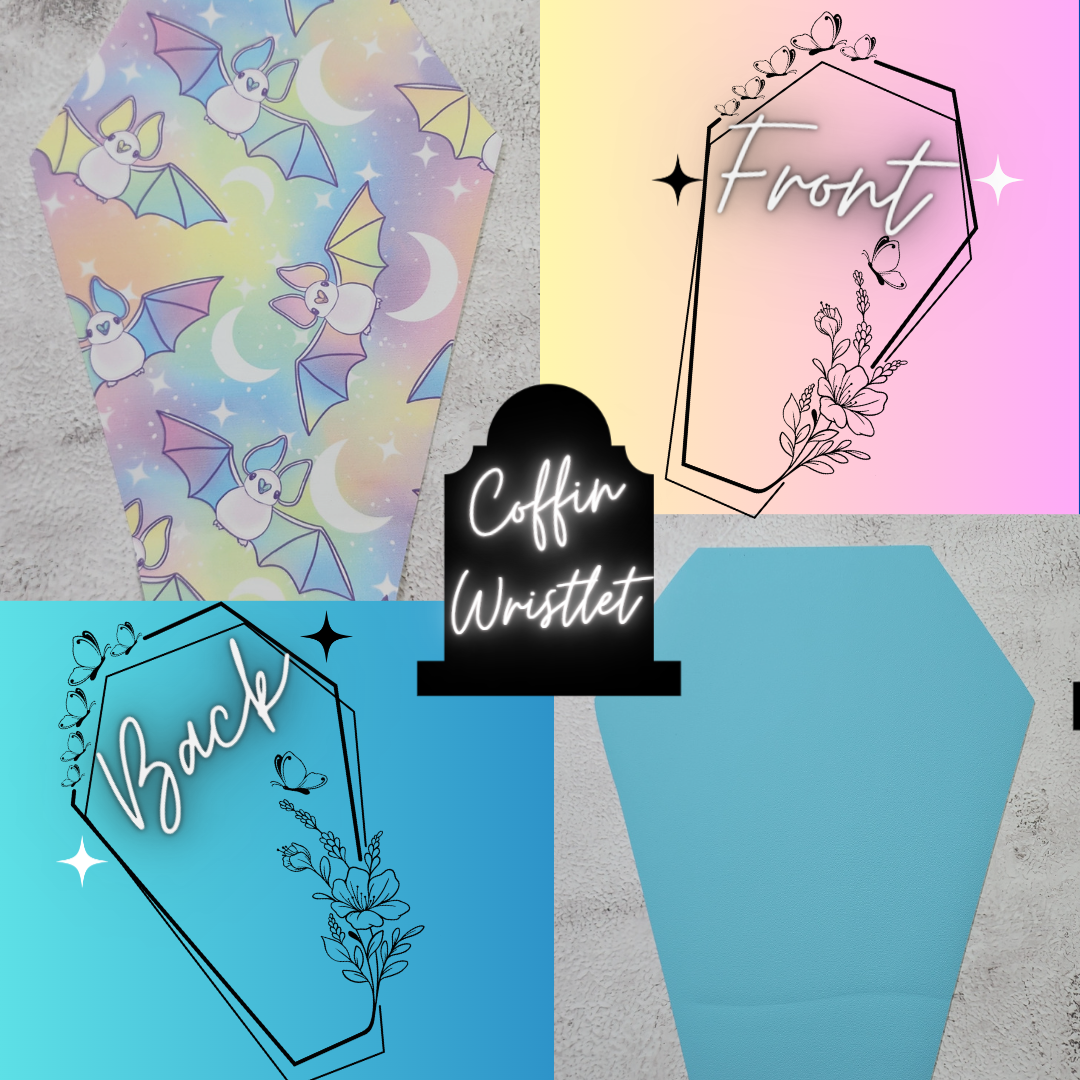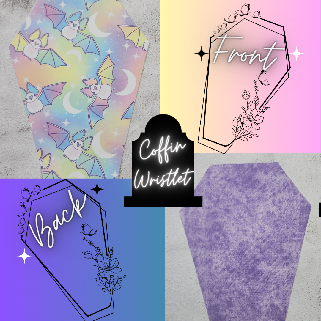 CUSTOM | Pastel Bats Coffin Wristlet Clutch | Vinyl & Cotton Pouch | Optional Add on's | Bag, Wallet, Purse