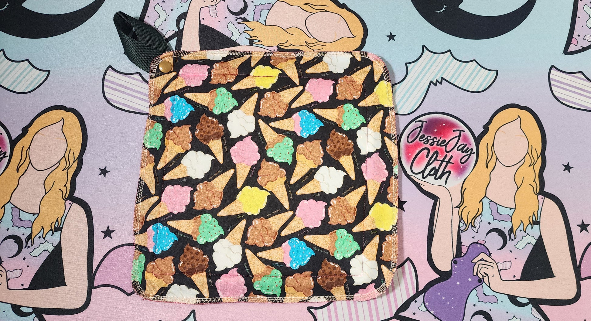 Ready to Ship Pot Holder | Medium Size, Colorful Ice Cream Cones on Black