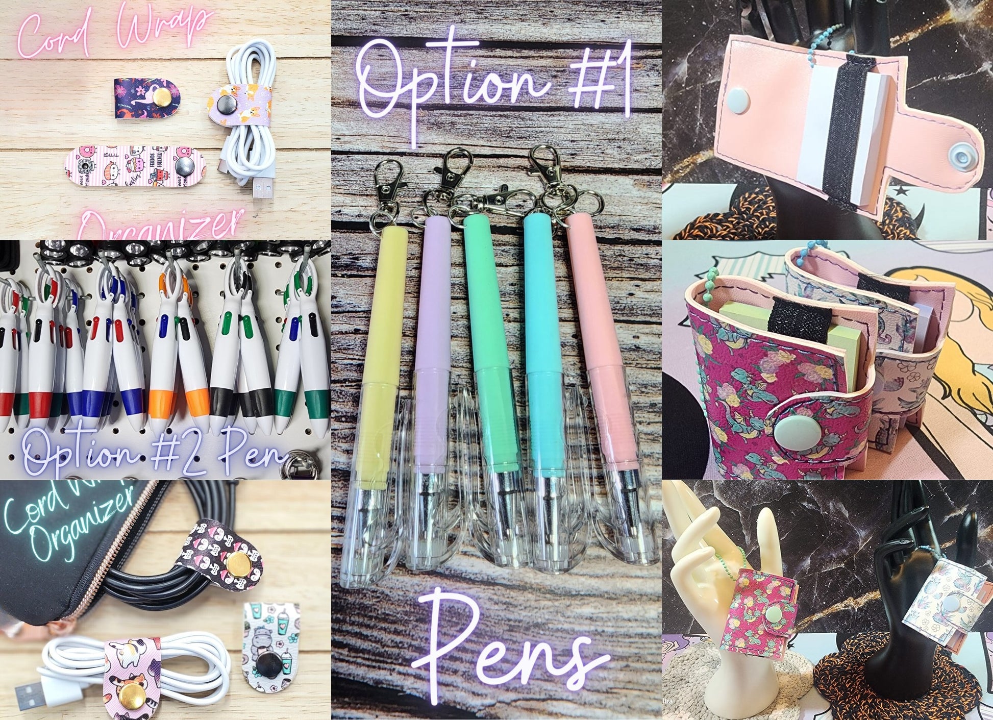 Reusable Mini Journal Keychain + Pen + Cord holder organizer + 50 sticky notes