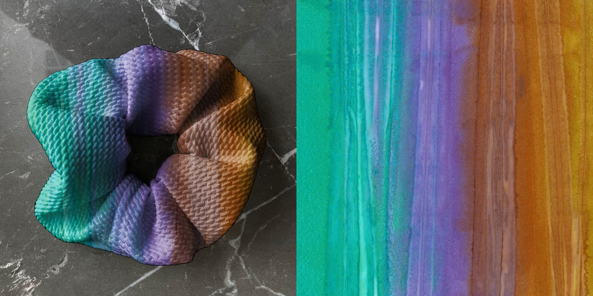 Examples can be seen in the next few photos. Please note that the 1st image is a mock up of what the scrunchie would look like. The mock up is a textured fabric BUT the actual print is a smooth cotton woven fabric. So it will look slightly different. The middle image in the collage is a photo I took of the fabric.