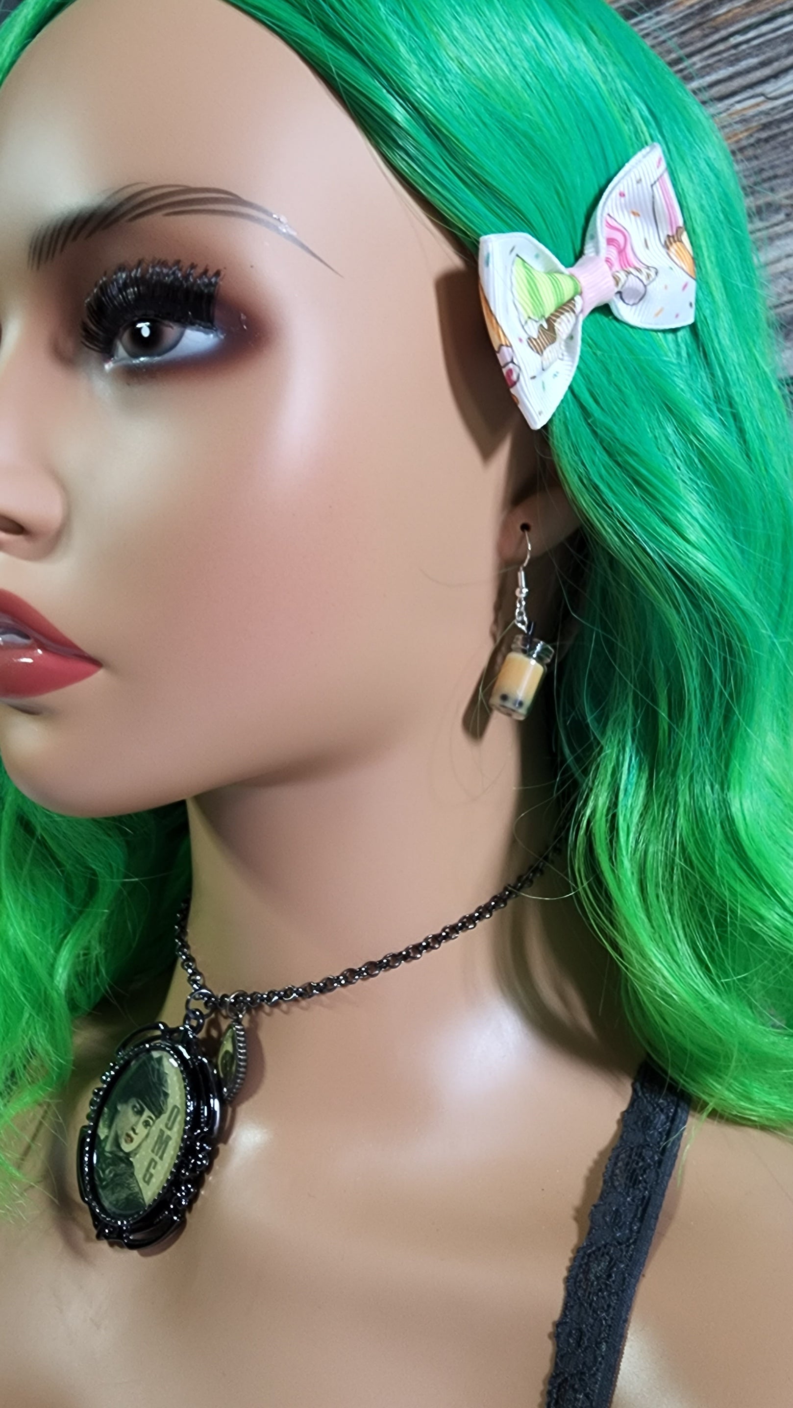 Thai Tea Mason Jar Boba Tea Earrings | Silver Dangles |