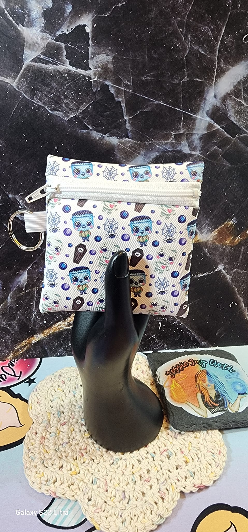 With its durable faux leather construction and convenient zipper closure, this pouch is both practical and fashionable. Comes with a keyring so you can attach it to bags, purses, or even hang on the wall. Optional wristlets available.