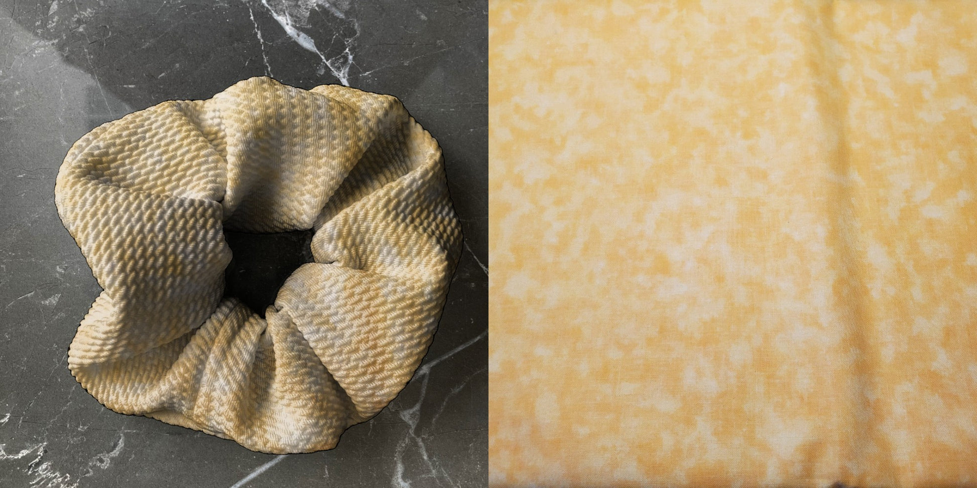 Examples can be seen in the next few photos. Please note that the 1st image is a mock up of what the scrunchie would look like. The mock up is a textured fabric BUT the actual print is a smooth cotton woven fabric. So it will look slightly different. The middle image in the collage is a photo I took of the fabric.