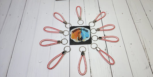 Blood Red & White | Leather Braided Rope Key Chain Strap | Add on