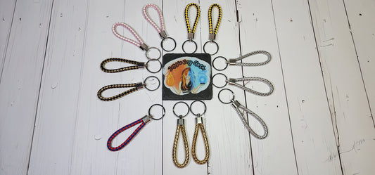 Pink & White, Gold/Silver/Black & Gold Metallic, Black & Yellow, Red & Blue | Leather Braided Rope Key Chain Strap | Add on