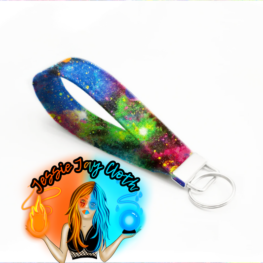 Rainbow galaxy with stars | Wristlet Key Fob | Fabric Keychain | Great for gifts |