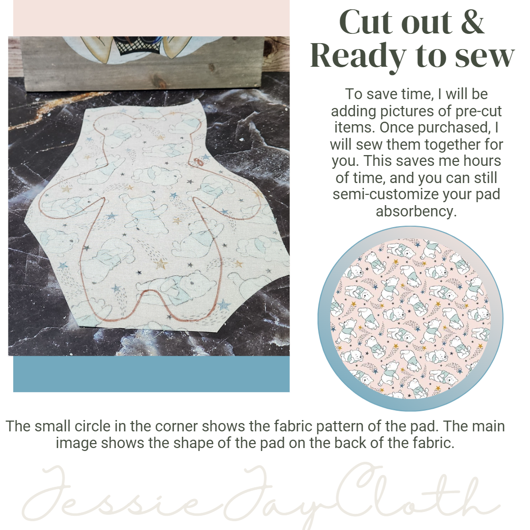8 inch Bear Pad | Play time Pooh | Goldilocks | Cloth Pad or liner | Choose your absorbency