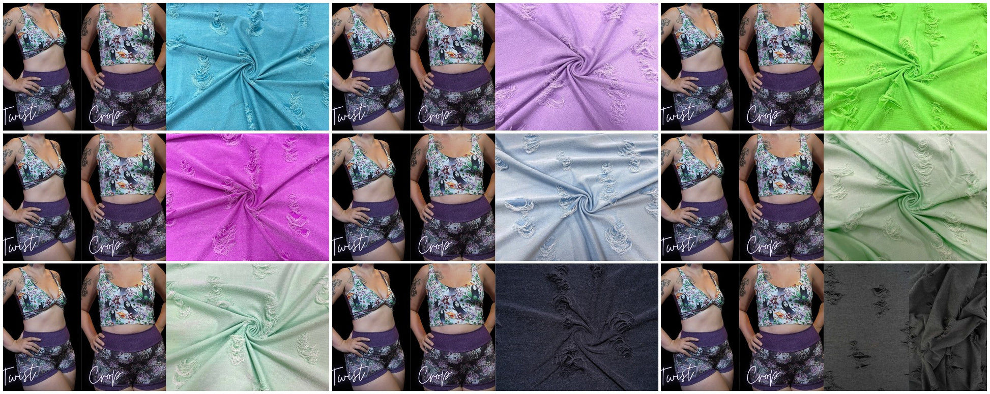 9 PRNTS! Custom 2-in-1 Crop Top | Distressed Fabrics, Blue, Purple, Green, Black, Piink