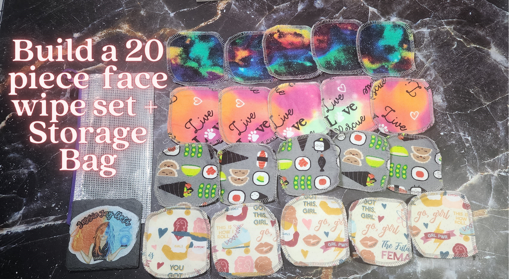 CUSTOM | Build your own 20 Piece Face Wipe Set | Storage Bag Included | 25% off Normal Pricing!