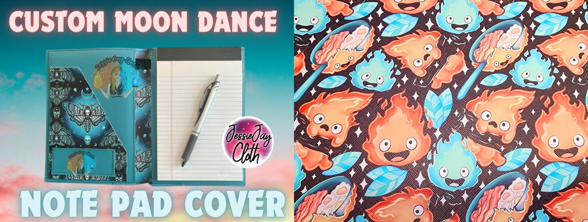 Calcifer Black Background, Food | Moondance Note Pad Holder | Comes in 3 Sizes | Stay Organized in Style