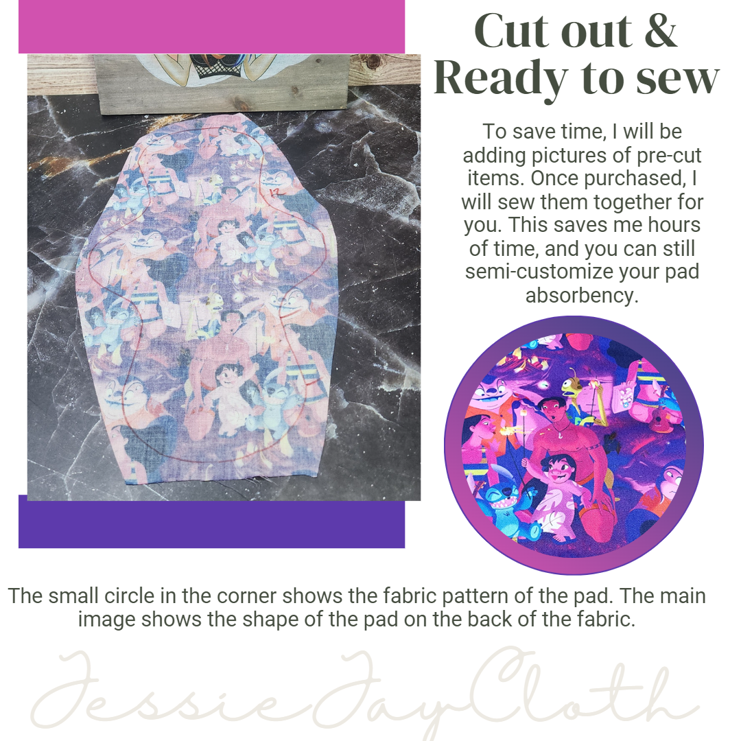 12 inch Classic Curvy | Fire Scene Stitch | Cloth Pad or liner | Choose your absorbency