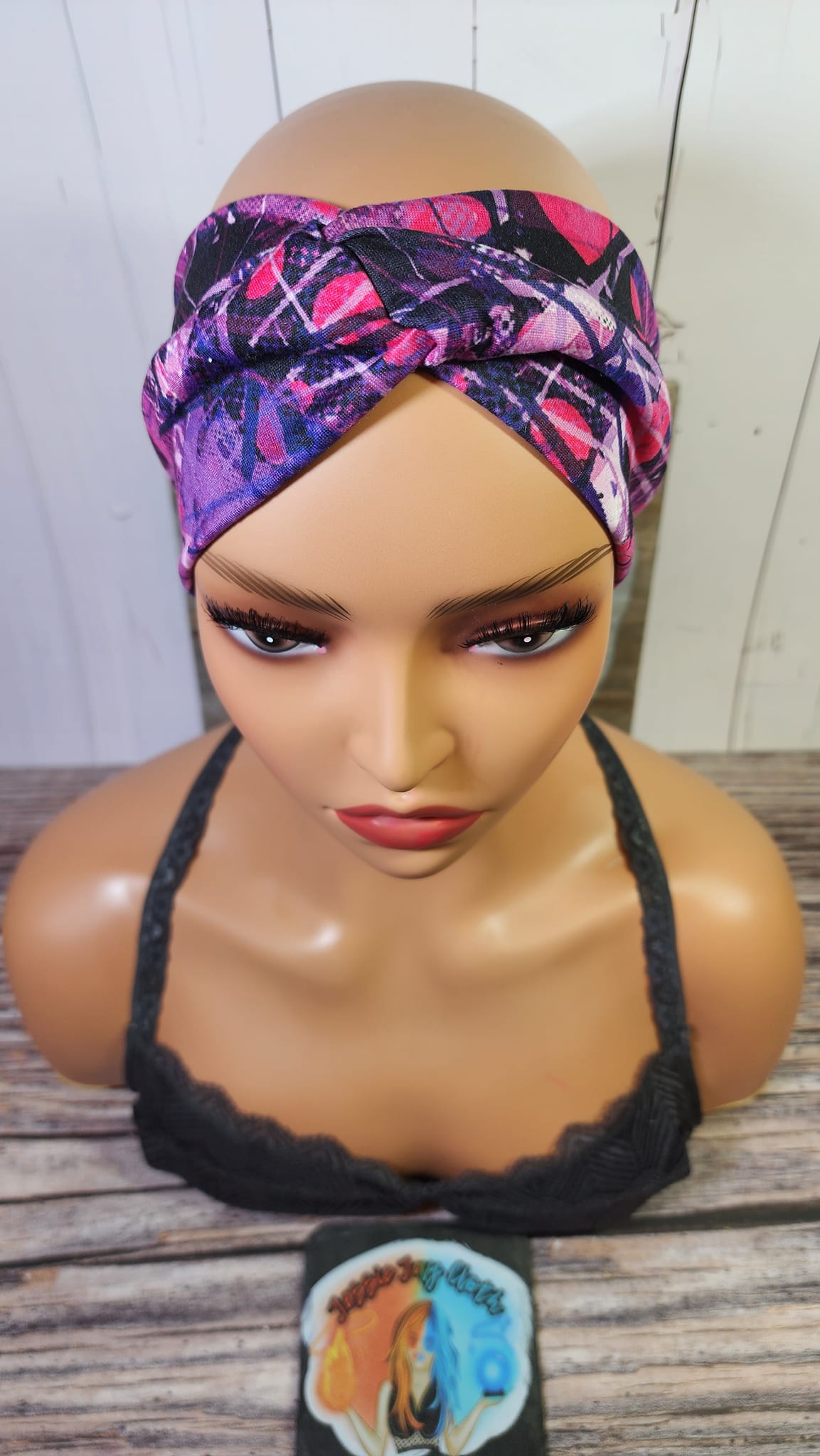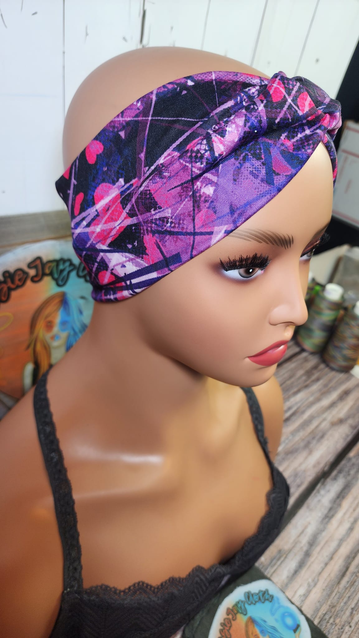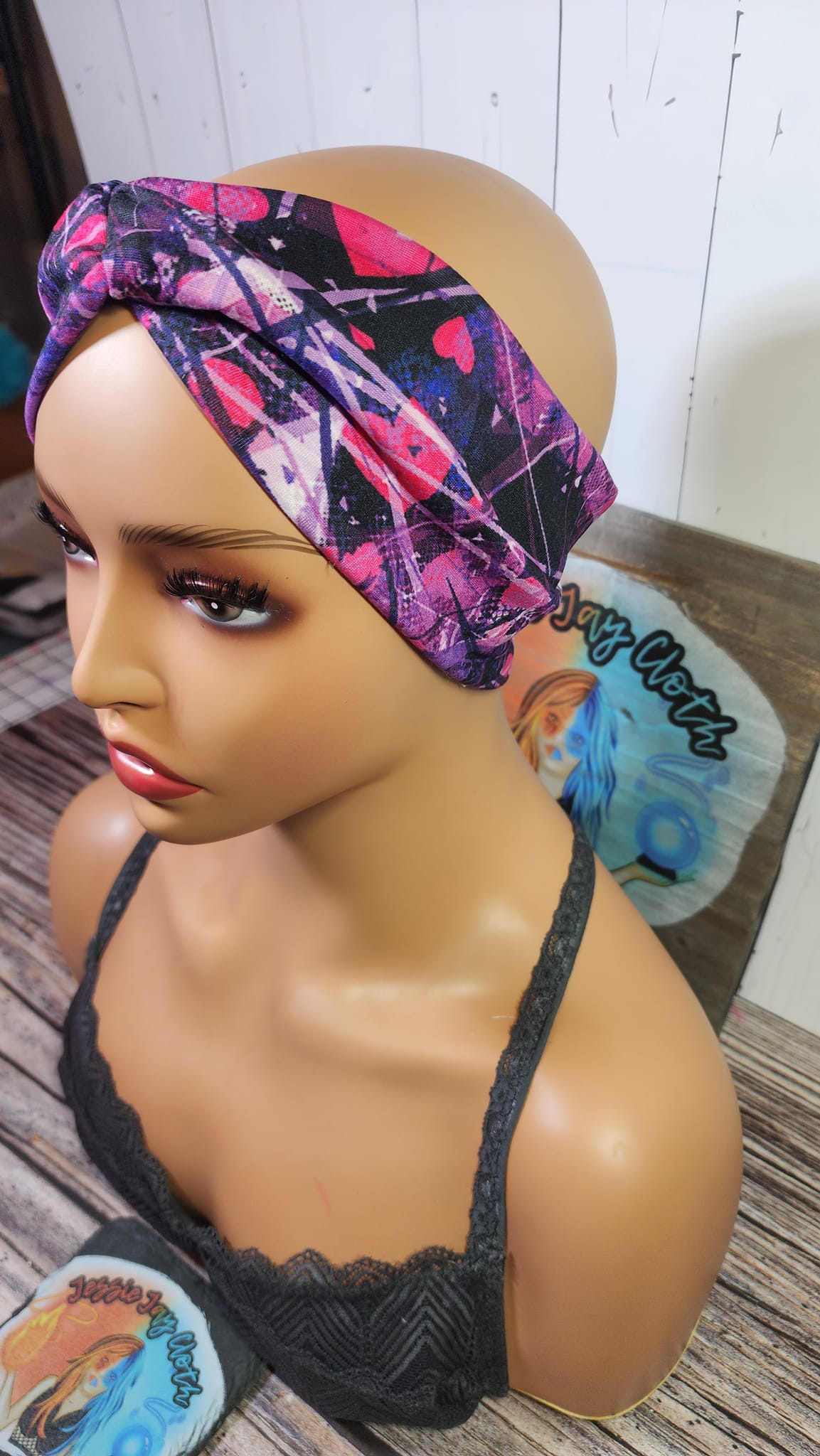 Pink Heart Grunge | Double Brushed Poly Twist Knot Head Band | Custom Turban Head Band | 4 Sizes