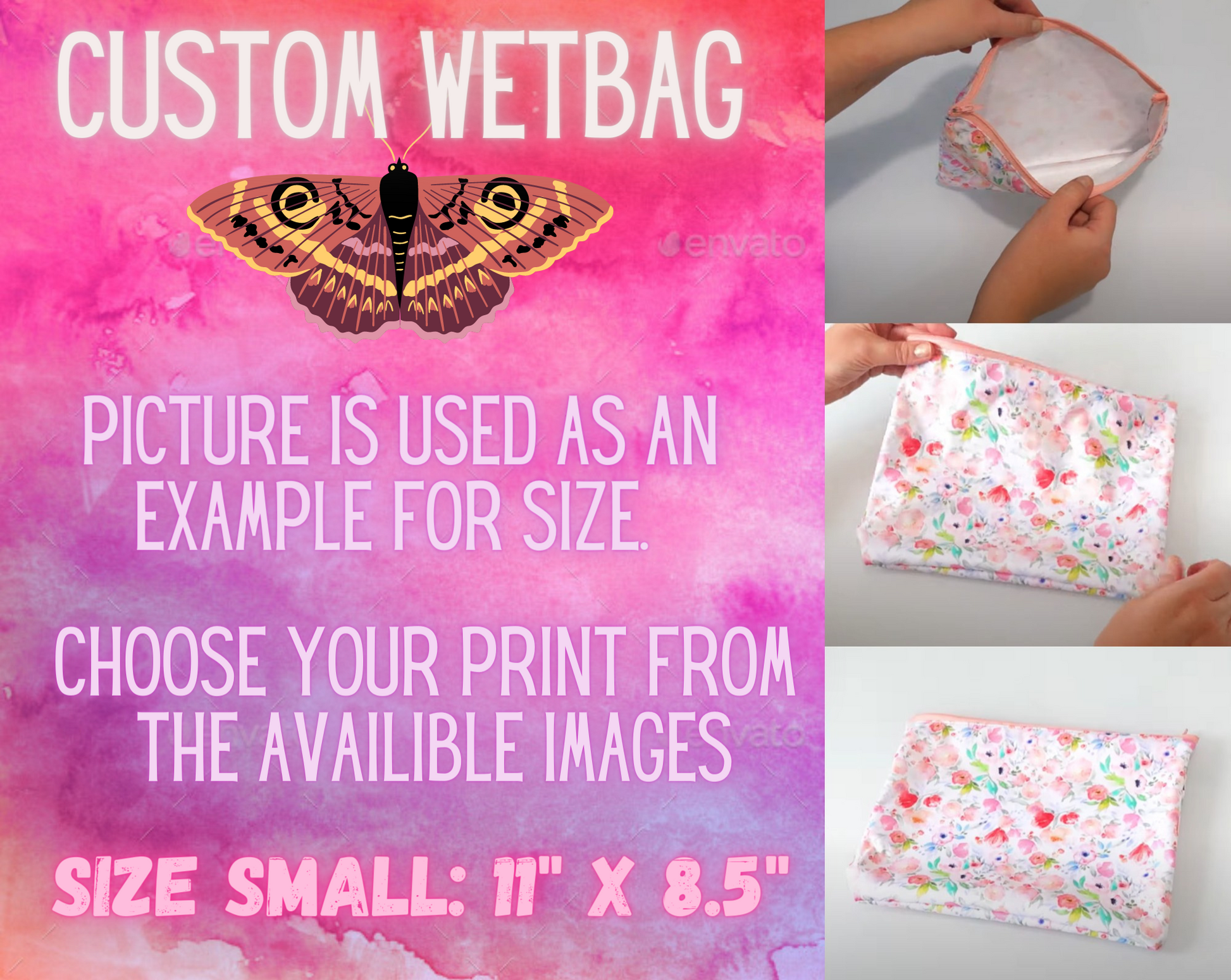 Small Custom Wet bag with zipper closure | 11 inch by 8.5 inch