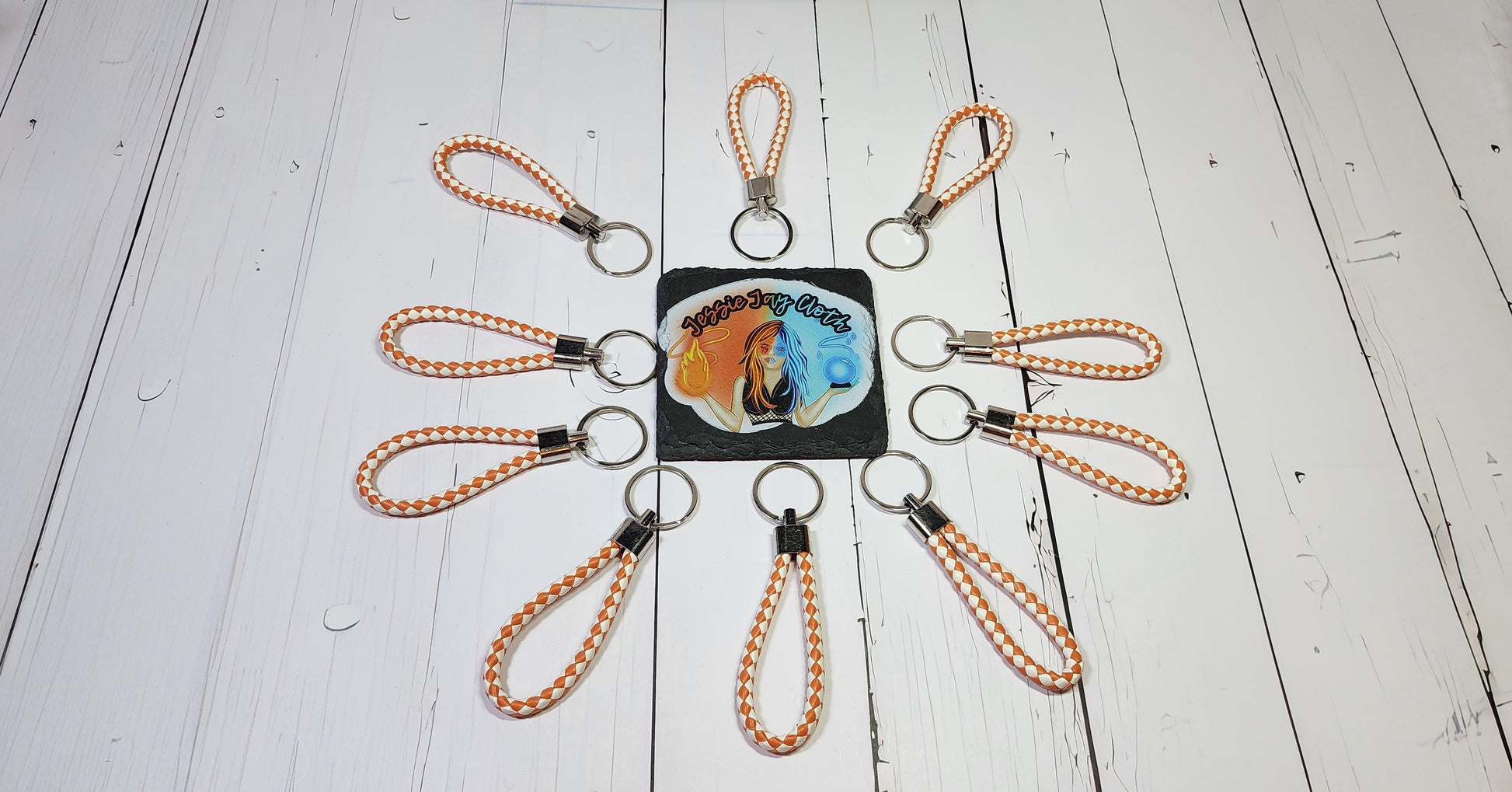 Orange & White | Leather Braided Rope Key Chain Strap | Add on