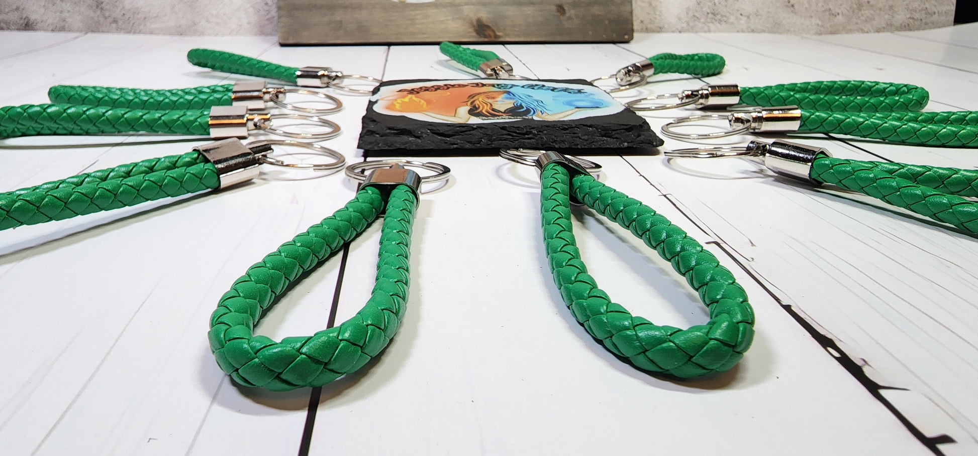 Vibrant Green | Leather Braided Rope Key Chain Strap | Add on