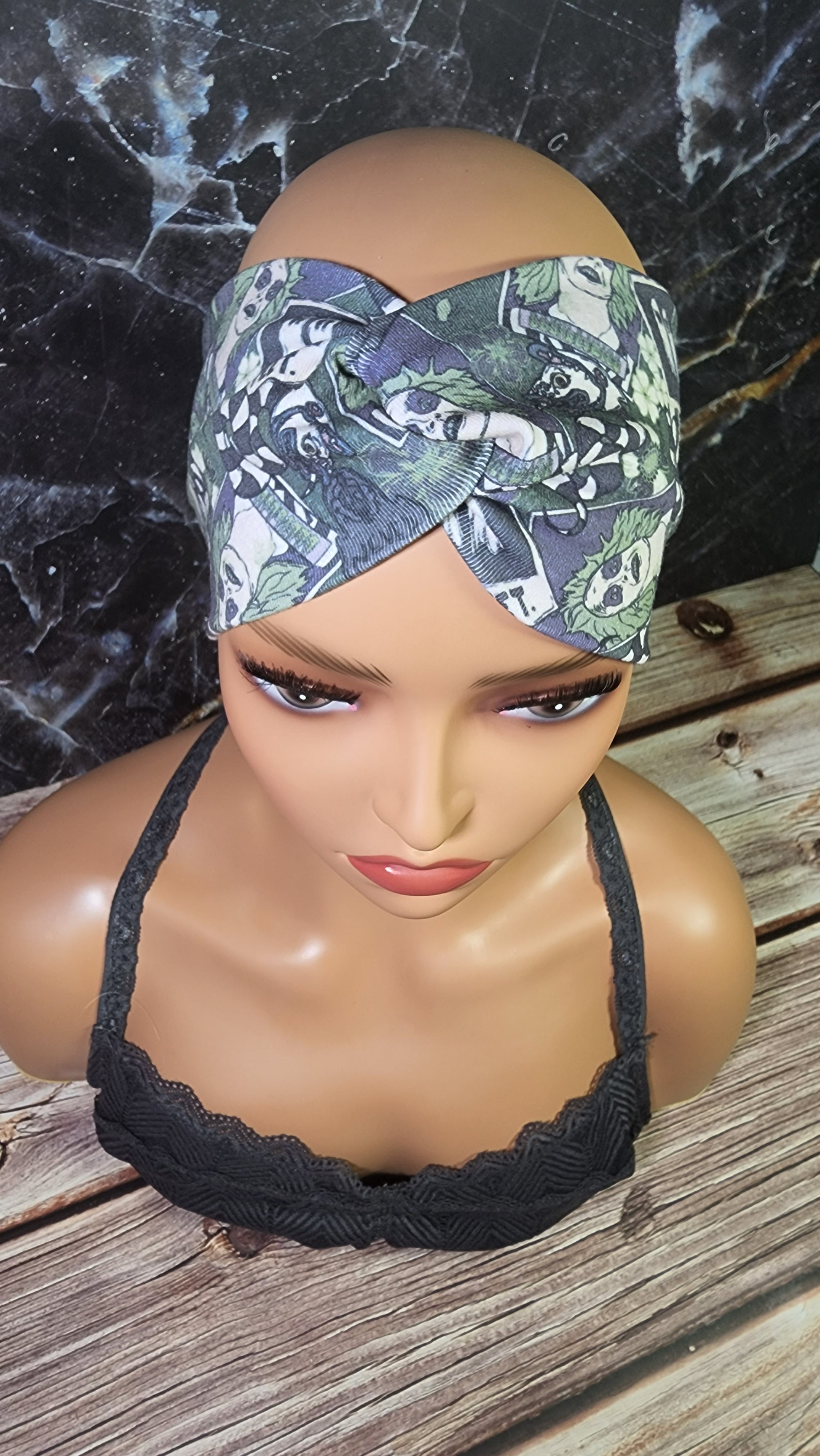 Muted Green Beetle J | Small 20" | RTS Cotton Lycra Head Band | Ready to ship | Horror, Juice, Never trust living