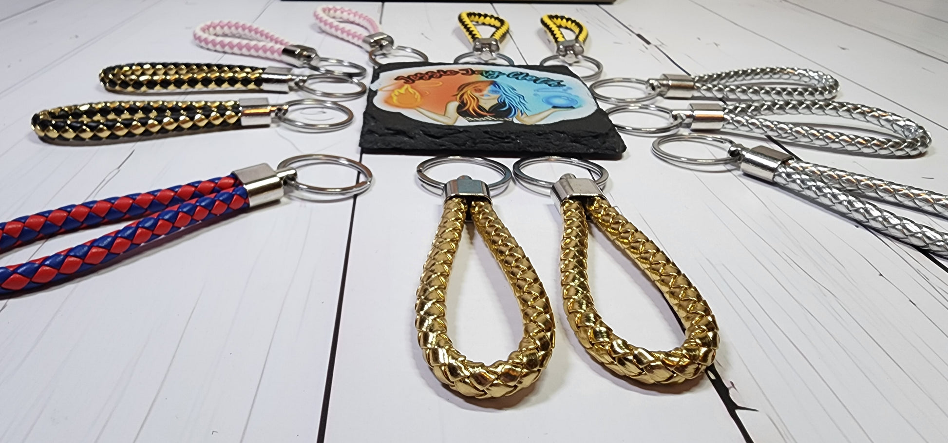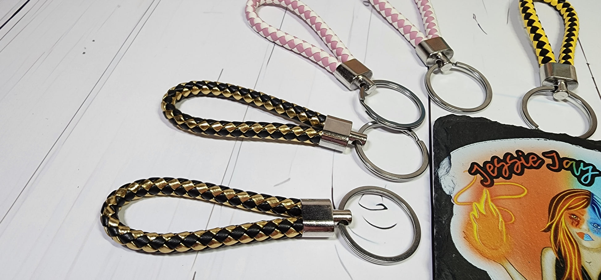 Pink & White, Gold/Silver/Black & Gold Metallic, Black & Yellow, Red & Blue | Leather Braided Rope Key Chain Strap | Add on