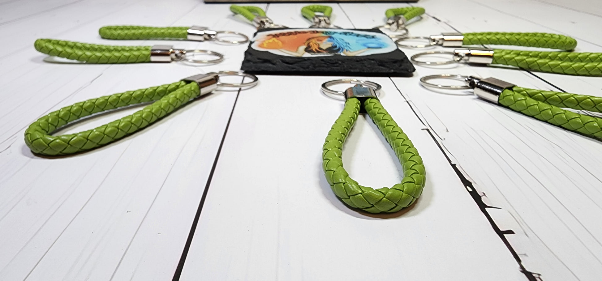 Lime Green | Leather Braided Rope Key Chain Strap | Add on