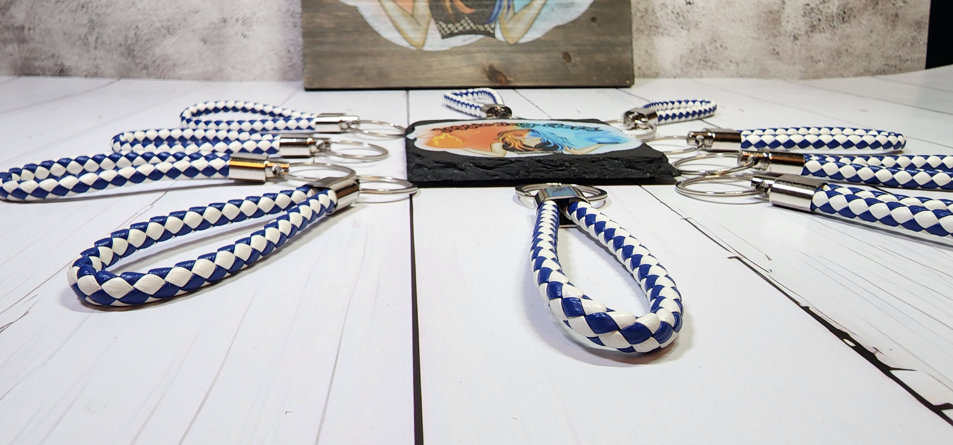 Royal Blue & White | Leather Braided Rope Key Chain Strap | Add on