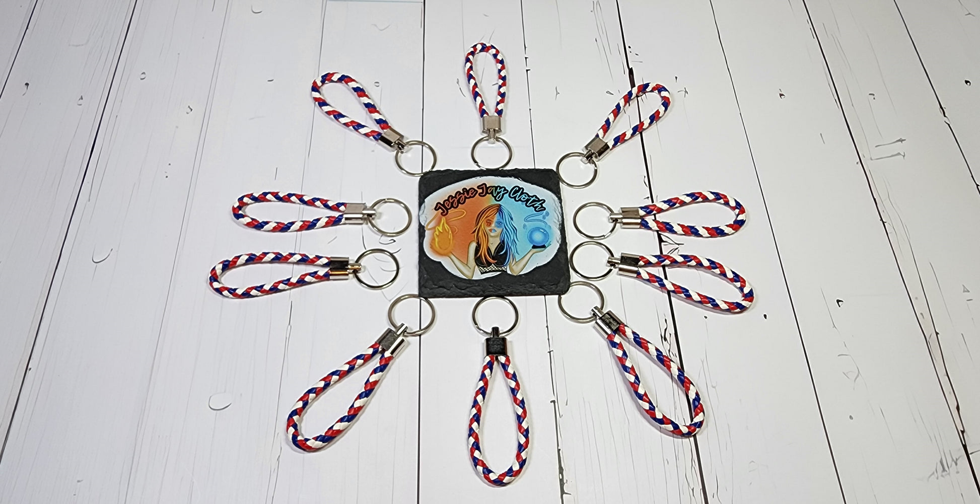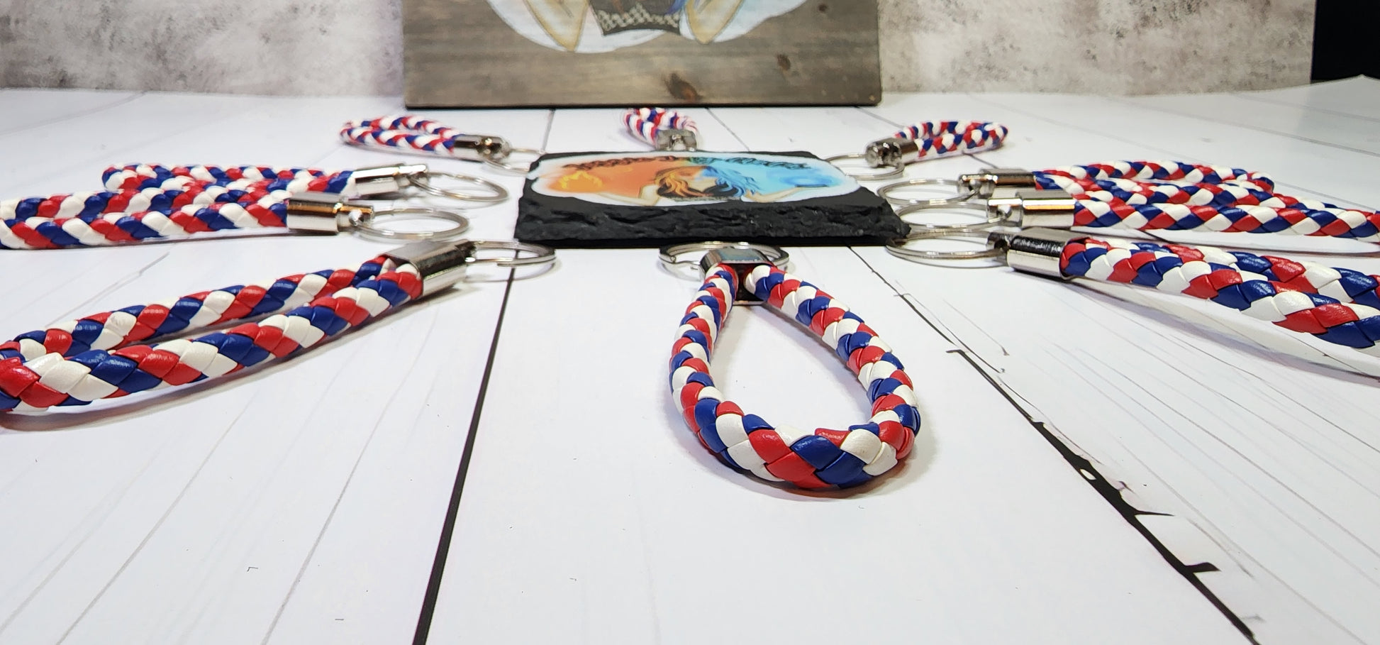 Red, White & Blue | Leather Braided Rope Key Chain Strap | Add on
