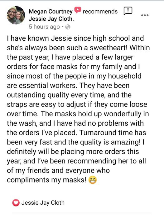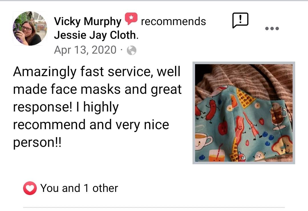 Made with two layers of soft cotton fabric or 1 layer flannel/1 layer cotton to hug the face comfortably. The elastic loops sit around the ears to hold the mask in place.