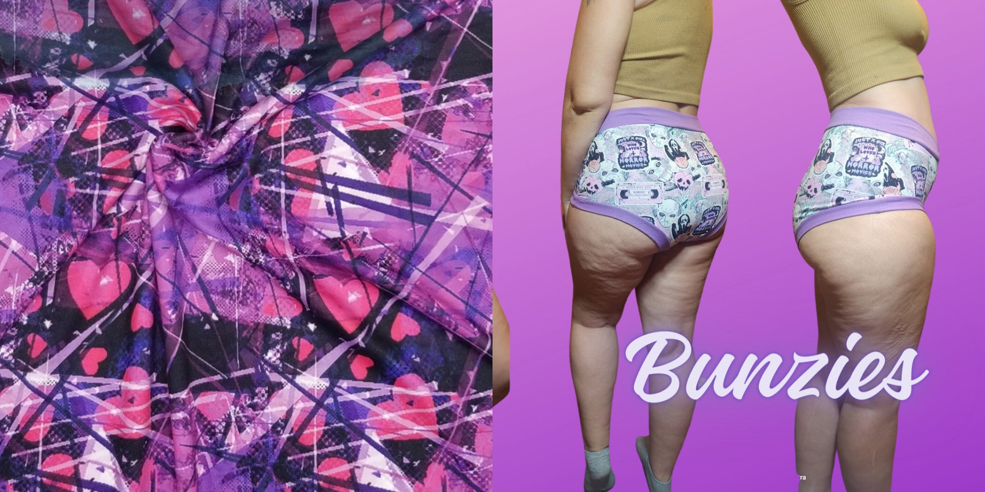 Grunge Hearts, Black, Purple | Bunzies Underwear | Choose Briefs, Booty, or Super Booty